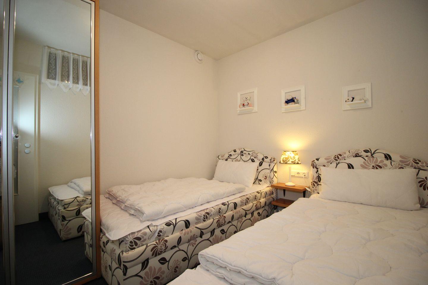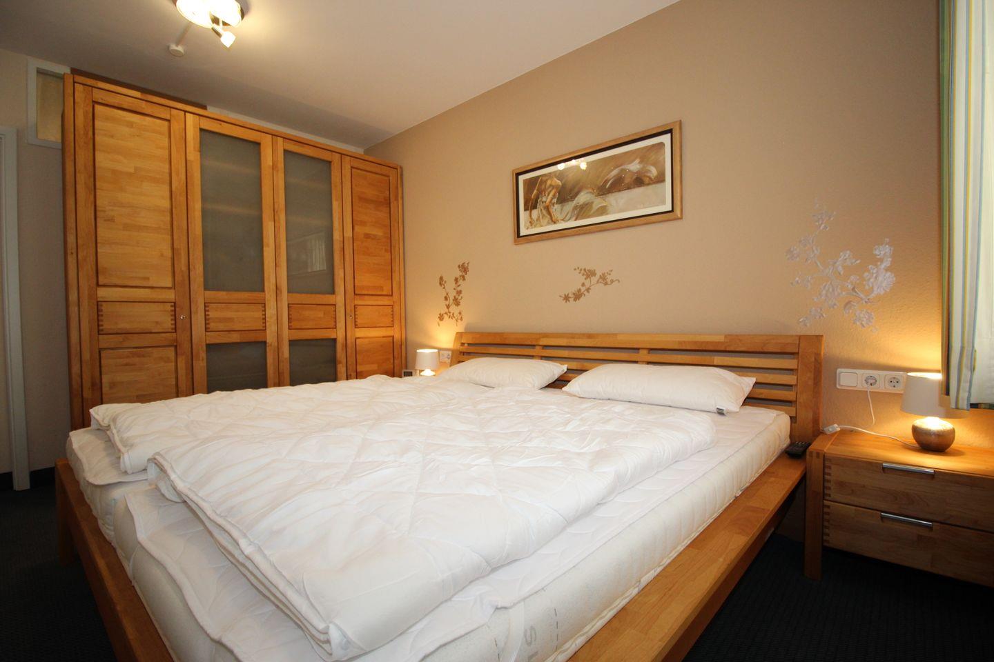 Haus "Kurpark-Residenz", Typ D2, Appartement-Nr. "132", bis 4 Personen, 1. OG, Südseite (Parkseite), ca. 68 m² Größe, Wohnzimmer, separates Schlafzimmer mit Doppelbett, sep. Kinderzimmer mit 2 Einzelbetten (innenliegend), Dusche/WC, offene Küche mit Mikrowelle und Geschirrspüler , Balkon, SAT-TV, WLAN Zugang im App., Tiefgaragenstellplatz, Nichtraucher, Haustiere sind nicht gestattet. Strandkorb im Sommer 2026.
