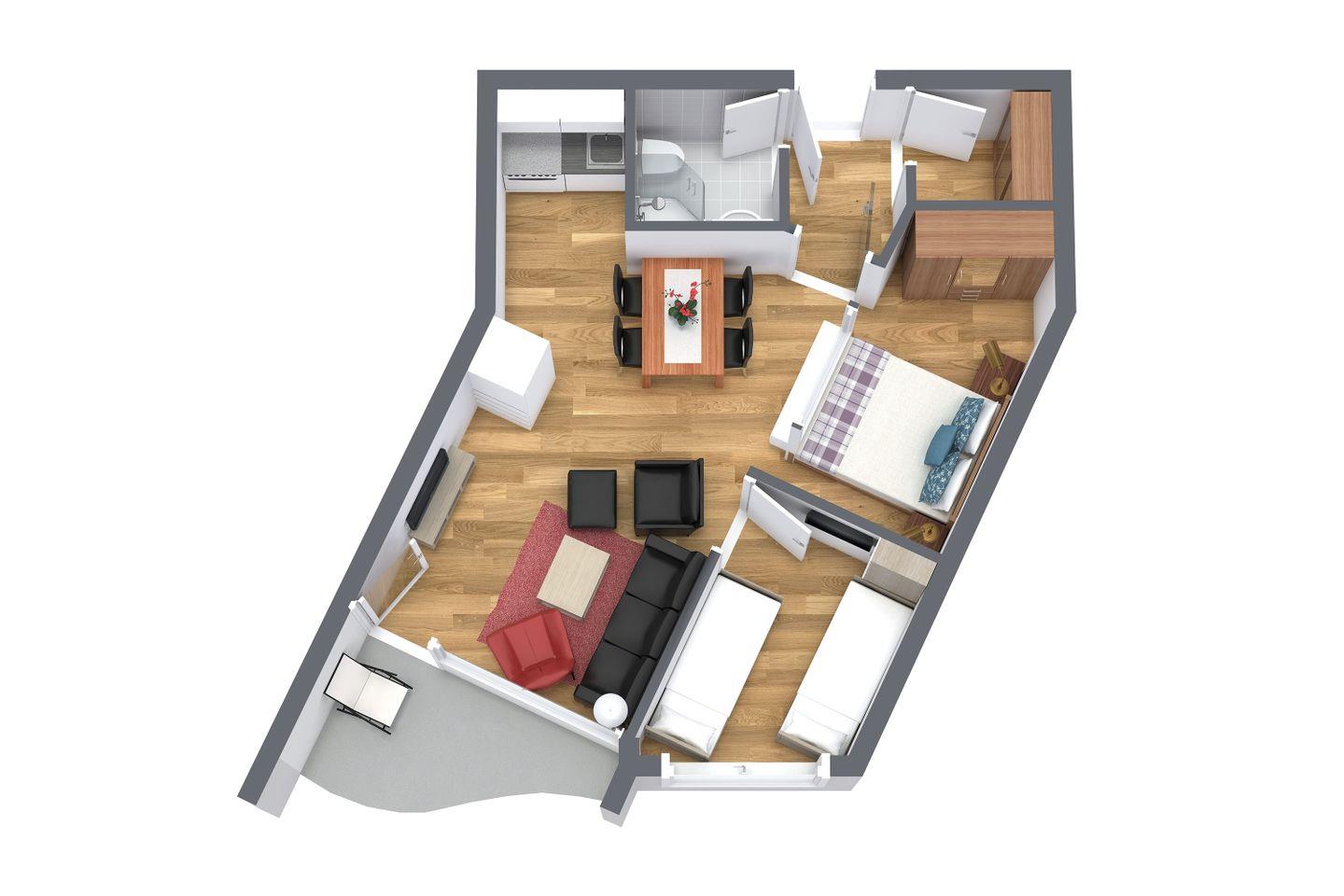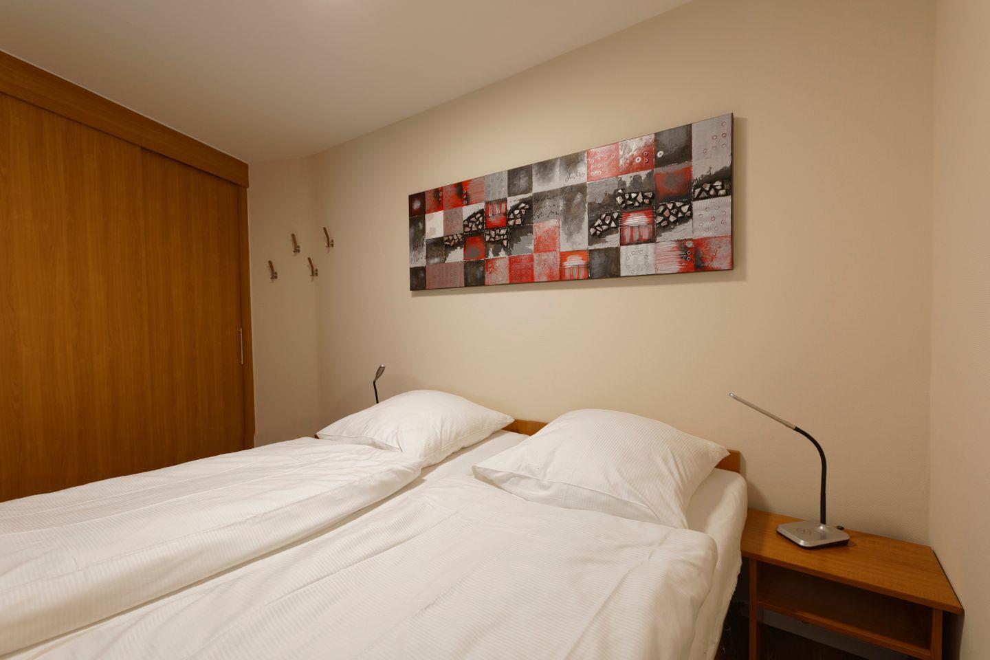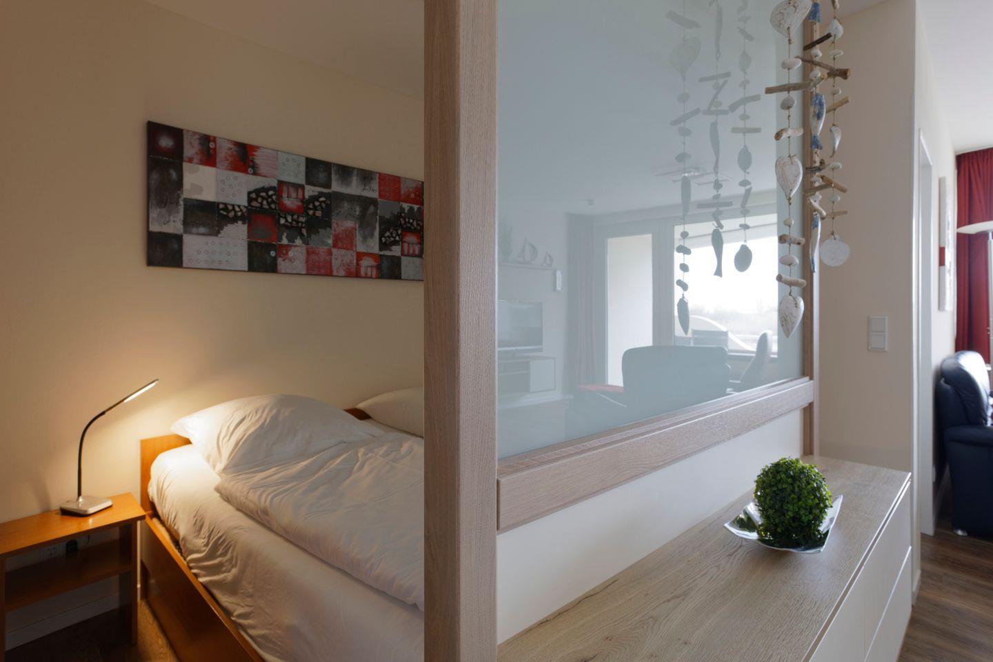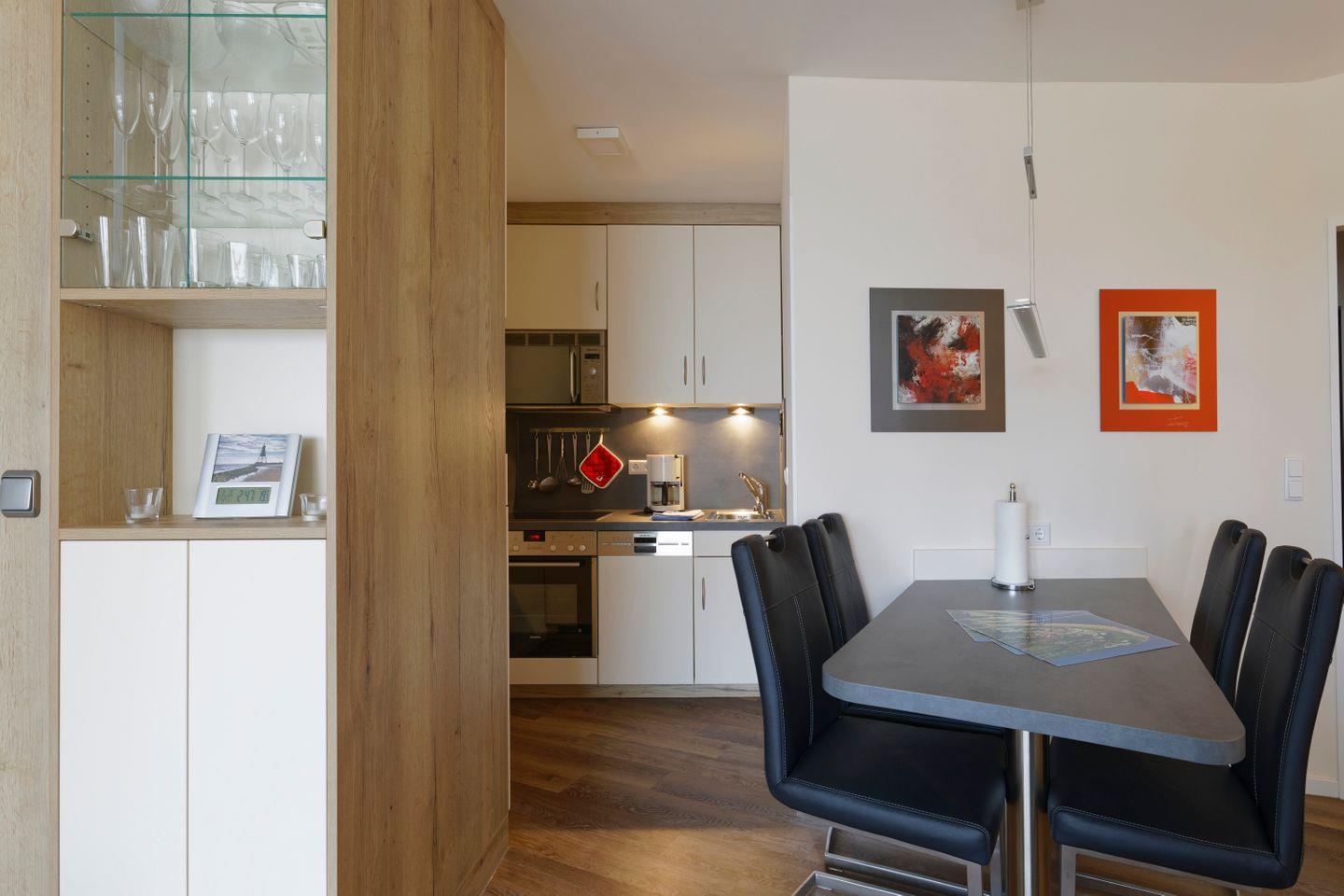 Haus "Trafalgar", Typ C, App.-Nr. 125, bis 4 Pers., 1.Etage, ca. 55 qm, Westseite (ohne Meerblick), Wohn/Schlafbereich mit Doppelbett (Raumteiler), separates Schlafzimmer mit 2 Einzelbetten und 2. TV-Gerät, Küchenzeile mit Backofen, Geschirrspüler und Mikrowelle, Dusche/WC, Balkon, Kabel-TV, kostenl. W-Lan Zugang im App, CD-Player, DVD-Spieler, Tiefgaragenstellplatz, Haustiere sind nicht gestattet, Nichtraucher, Strandkorb im Sommer 2025.