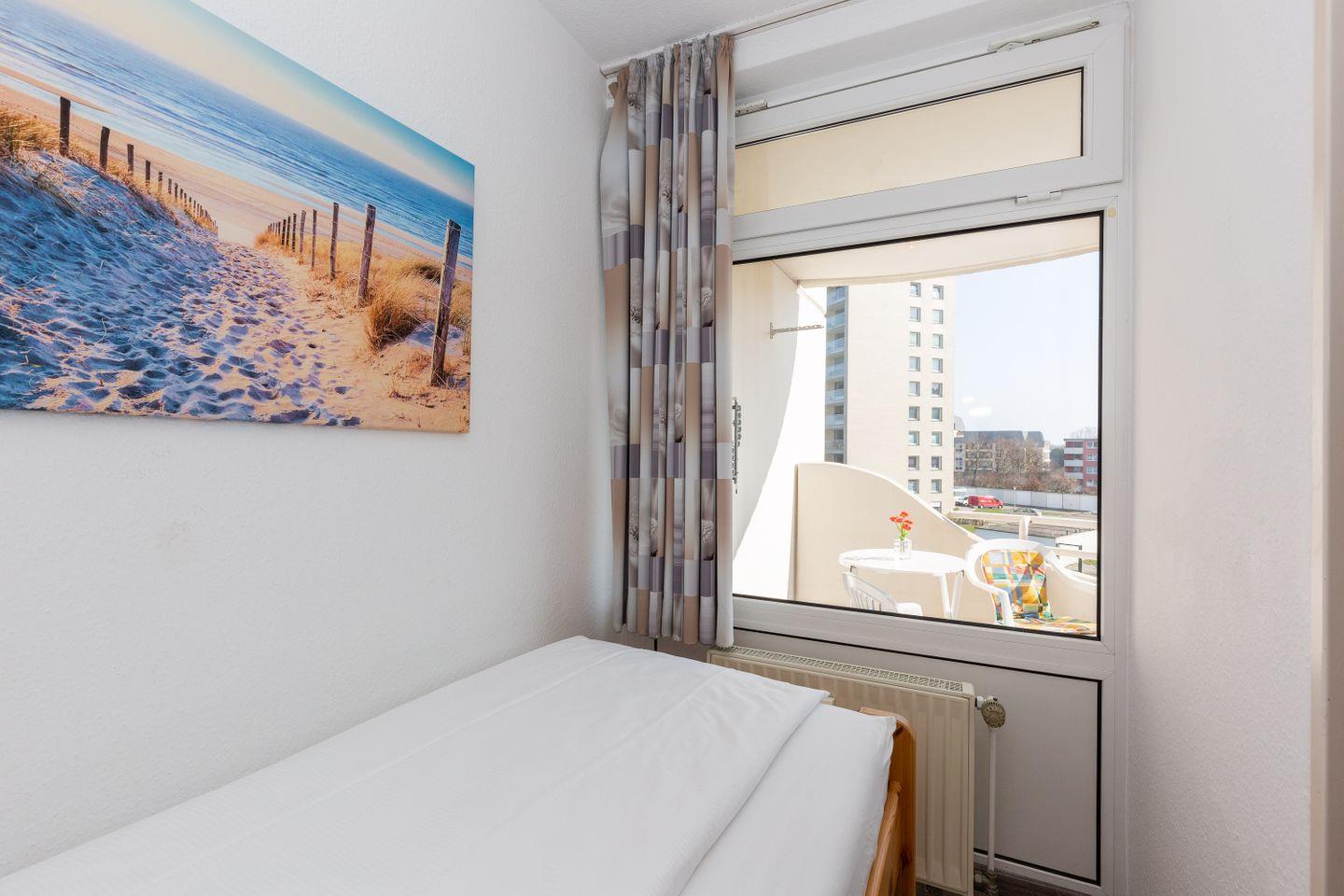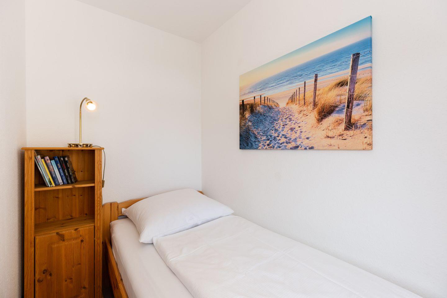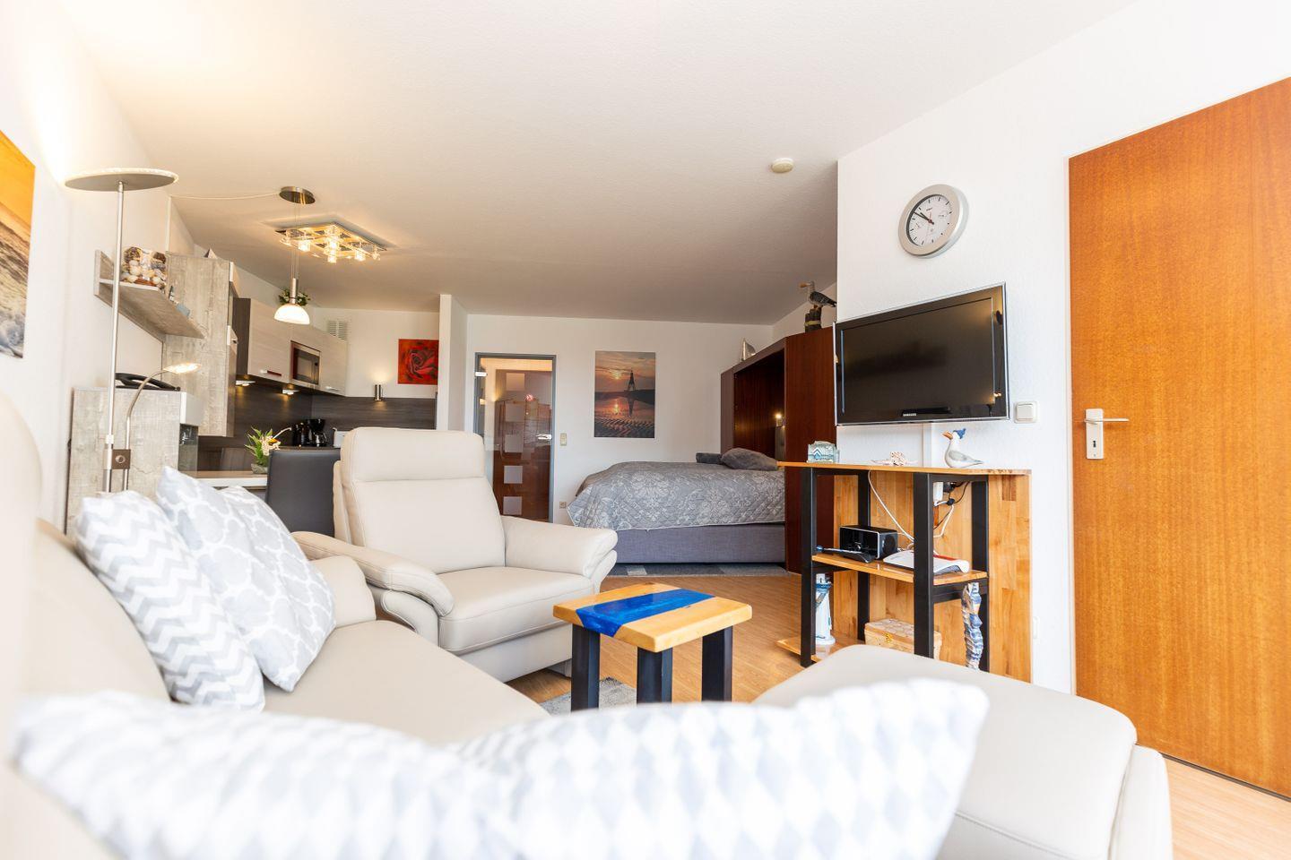 Haus "Lord Nelson", Typ 2, App.-Nr. "217", bis 3 Personen, 2. Etage, ca. 40 qm Wohnungsgröße, Ostseite (ohne Meerblick/Richtung Elbe), Balkon, Wohnbereich mit in den Schrank integrierten Boxspringbett (mit zwei Einzelmatratzen) , separates kleines Kinderzimmer mit Einzelbett, Dusche/WC, Küchenzeile mit Mikrowelle, Kabel-TV, kostenl. WLAN-Zugang im App., Tiefgaragenstellplatz, Strandkorb im Sommer 2026, Nichtraucherappartement