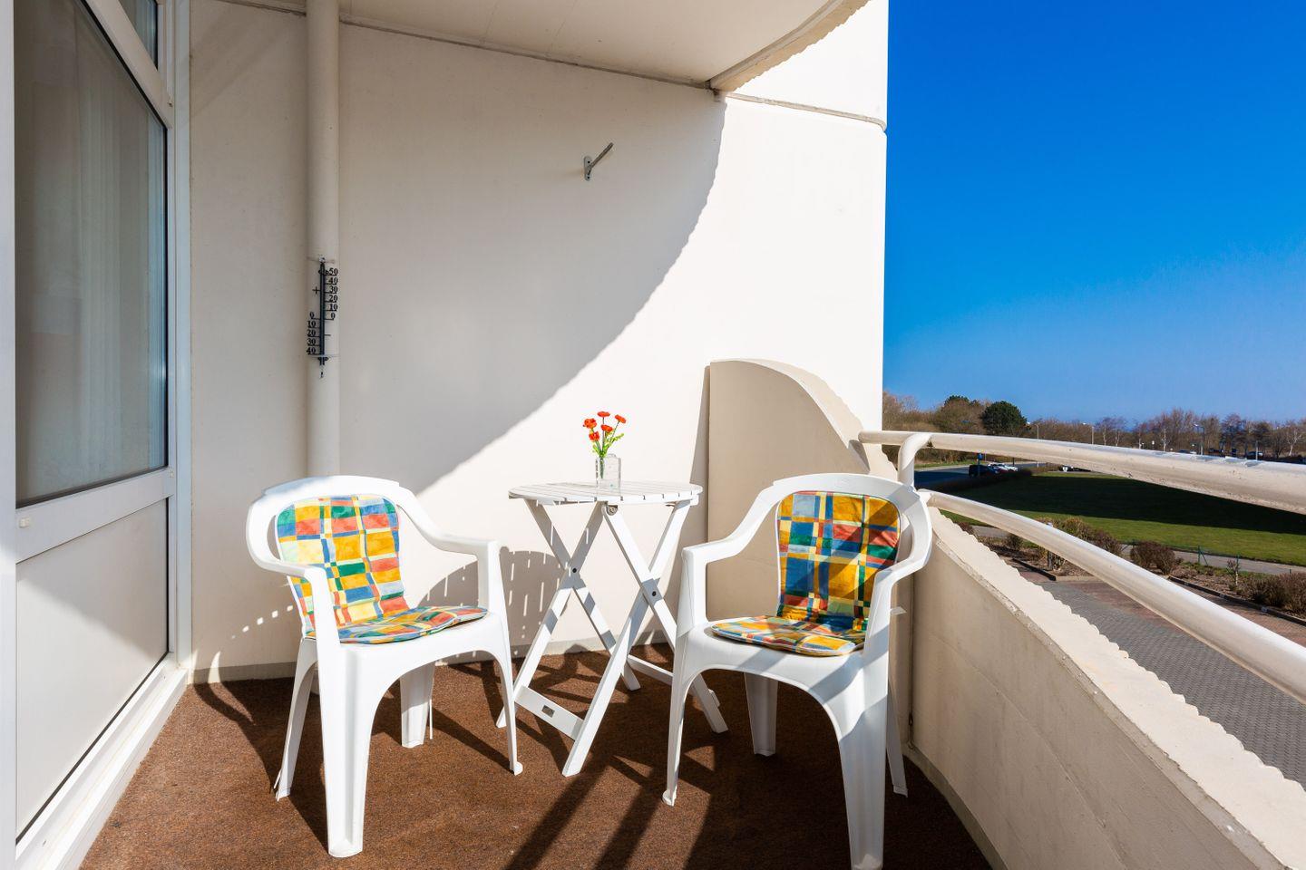 Auf der Terrasse können Sie jederzeit die frische Nordseeluft genießen und sich entspannt zurücklehnen. Dazu stehen bequeme Balkonmöbeln für Sie bereit. Von hier aus können Sie Schiffe auf dem Weltschifffahrtsweg beobachten.