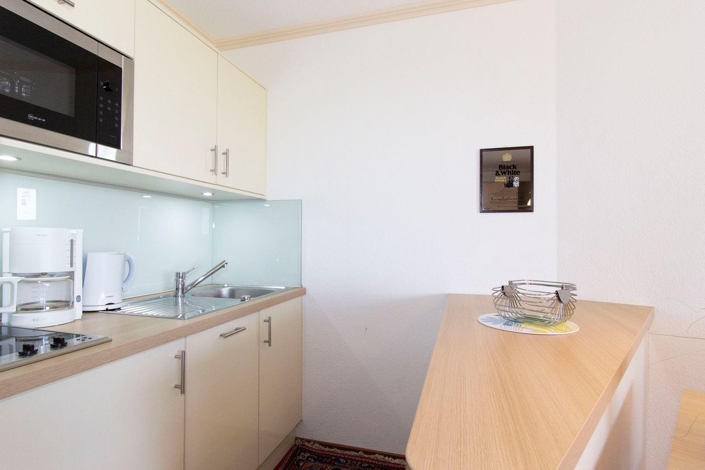 Haus "Lord Nelson", Typ 2, App.-Nr. "203", bis 4 Personen, 2. Etage, Westseite (ohne Meerblick/Richtung Neuwerk), Wohnbereich mit in den Schrank integrierten Boxspringbett (2 Einzelne Matratzen 90x200), separates kleines Kinderzimmer mit Einzelbett und klappbaren Schiffskojenbett, Dusche/WC, Küchenzeile mit Mikrowelle und Geschirrspüler, ca. 40 qm Wohnungsgröße, Balkon, Kabel-TV, Tiefgaragenstellplatz, Nichtraucherappartement, Haustiere sind nicht gestattet, kein WLAN, Strandkorb im Sommer 2025.
