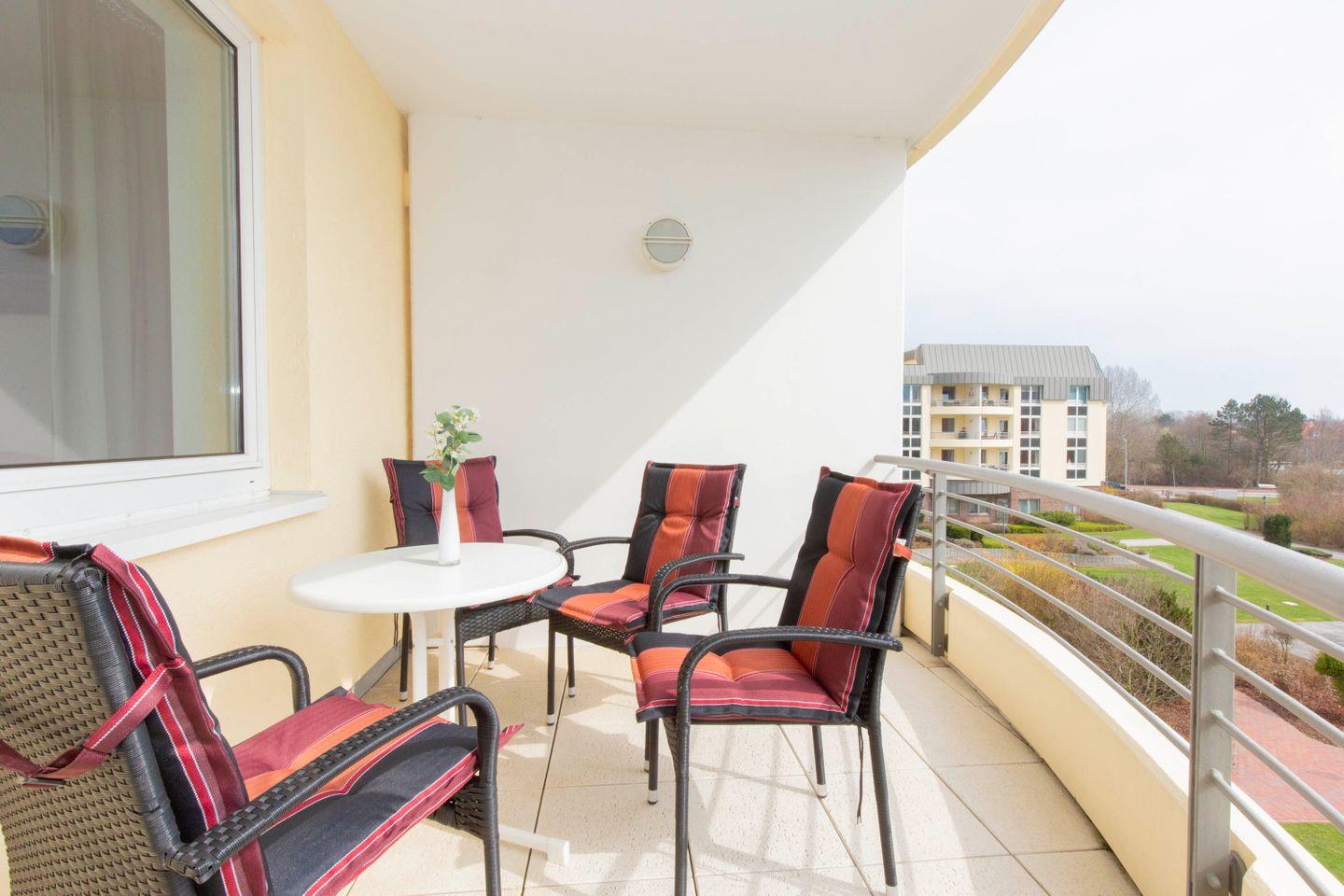 Die Ferienwohnung verfügt über zwei Loggia, in denen die Urlaubsgäste jederzeit die frische Nordseeluft genießen können. Der perfekte Ort, um einen Urlaubstag Revue passieren zu lassen.