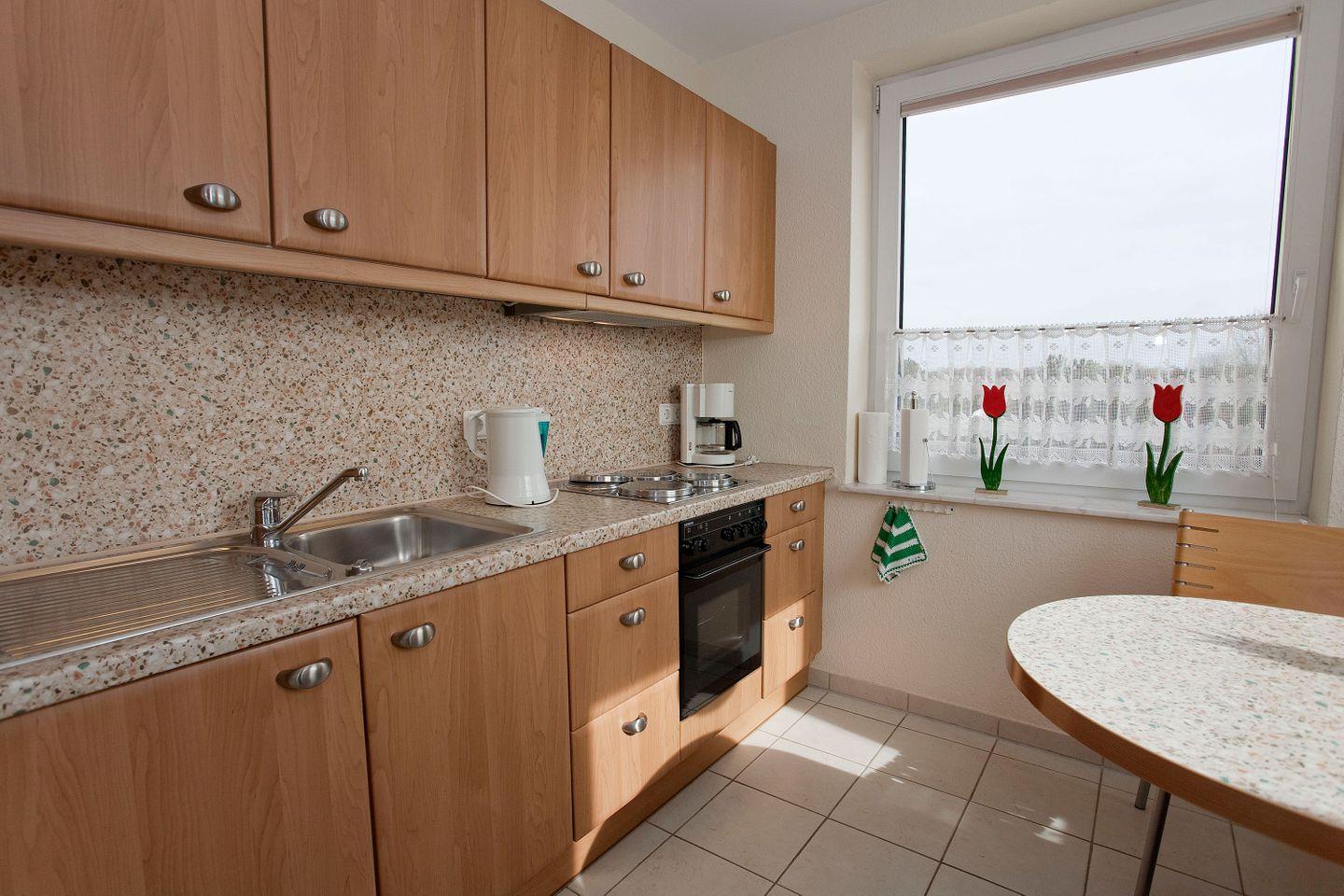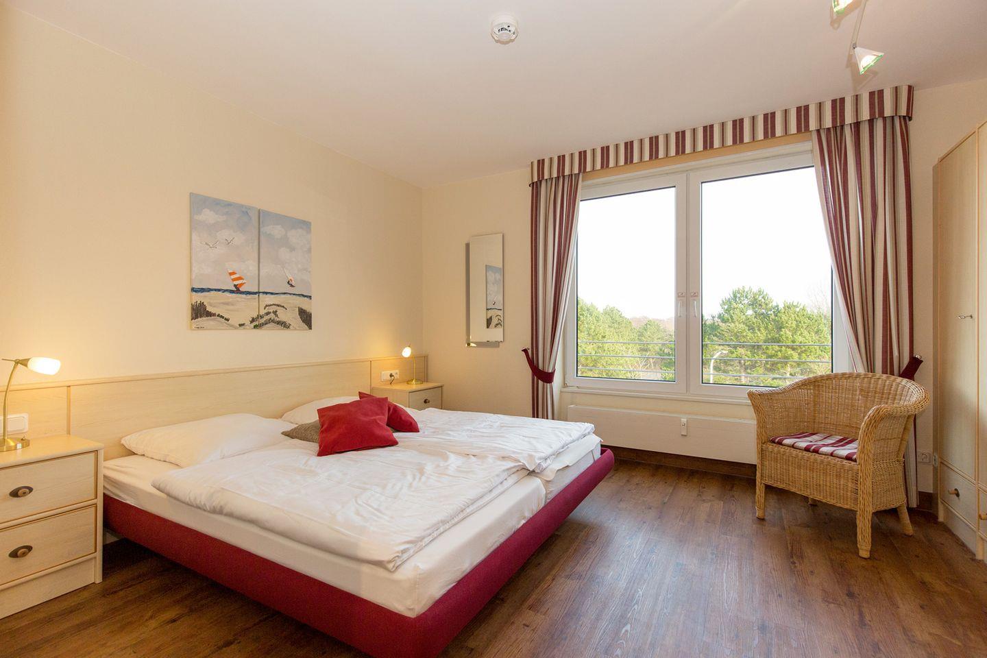 Haus "Kurpark-Residenz", Typ D2, App.-Nr. "201", bis 4 Pers., 2. OG, Südseite ("Landseite"), ca. 70 m² Größe, Wohnzimmer, sep. Schlafzimmer mit Doppelbett, sep. Kinderzimmer mit 2 Einzelbetten, Dusche/WC, Gäste-WC, neue Küchenzeile mit Backofen und Geschirrspüler, Loggia, kostenl. W-Lan Zugang im App., SAT-TV, Tiefgaragenstellplatz, Nichtraucher, Haustiere sind nicht gestattet, Strandkorb im Sommer 2025.