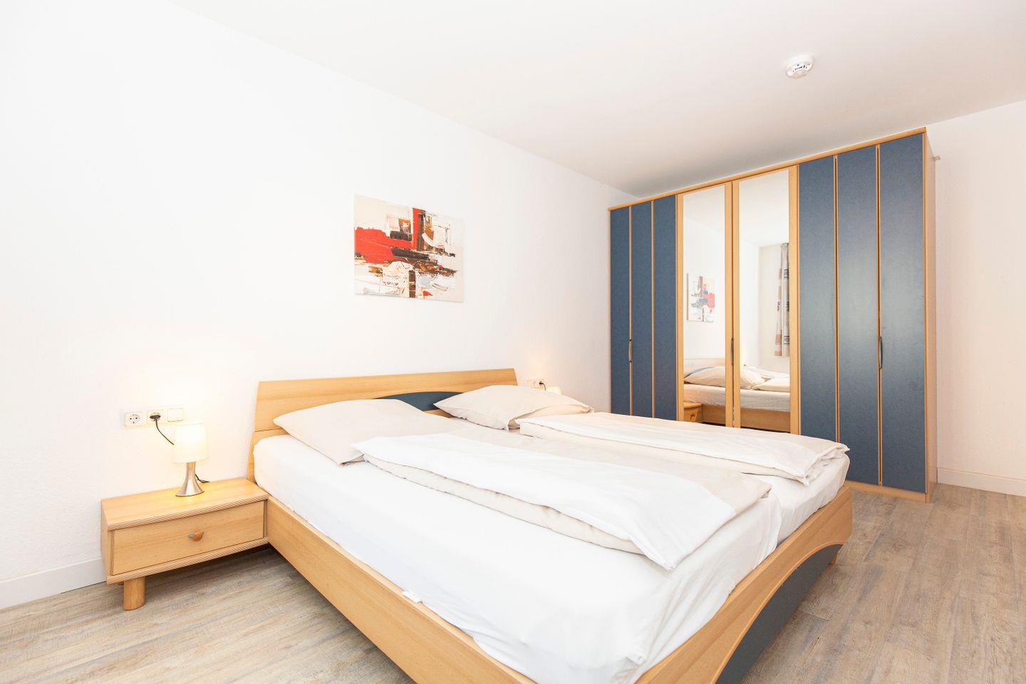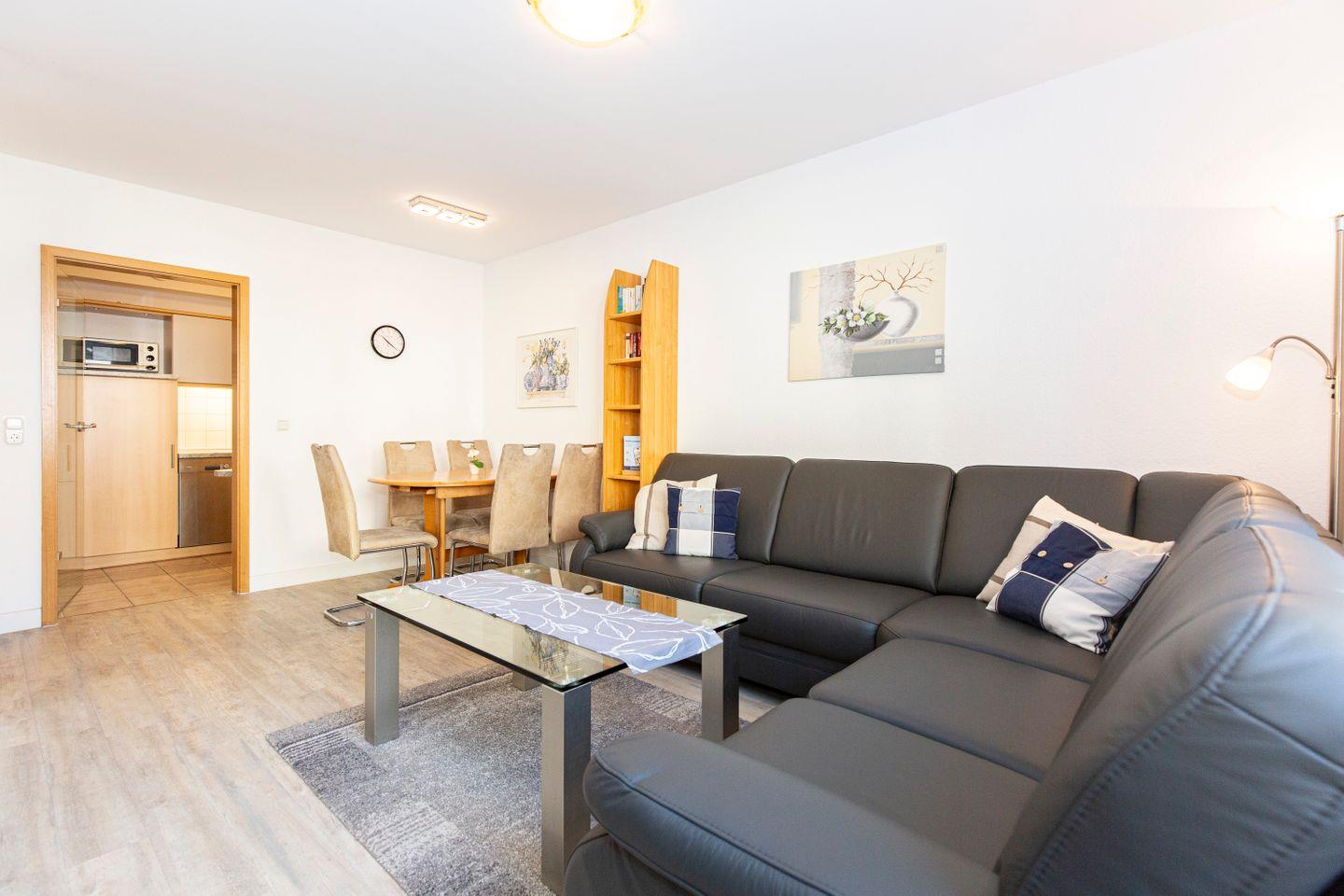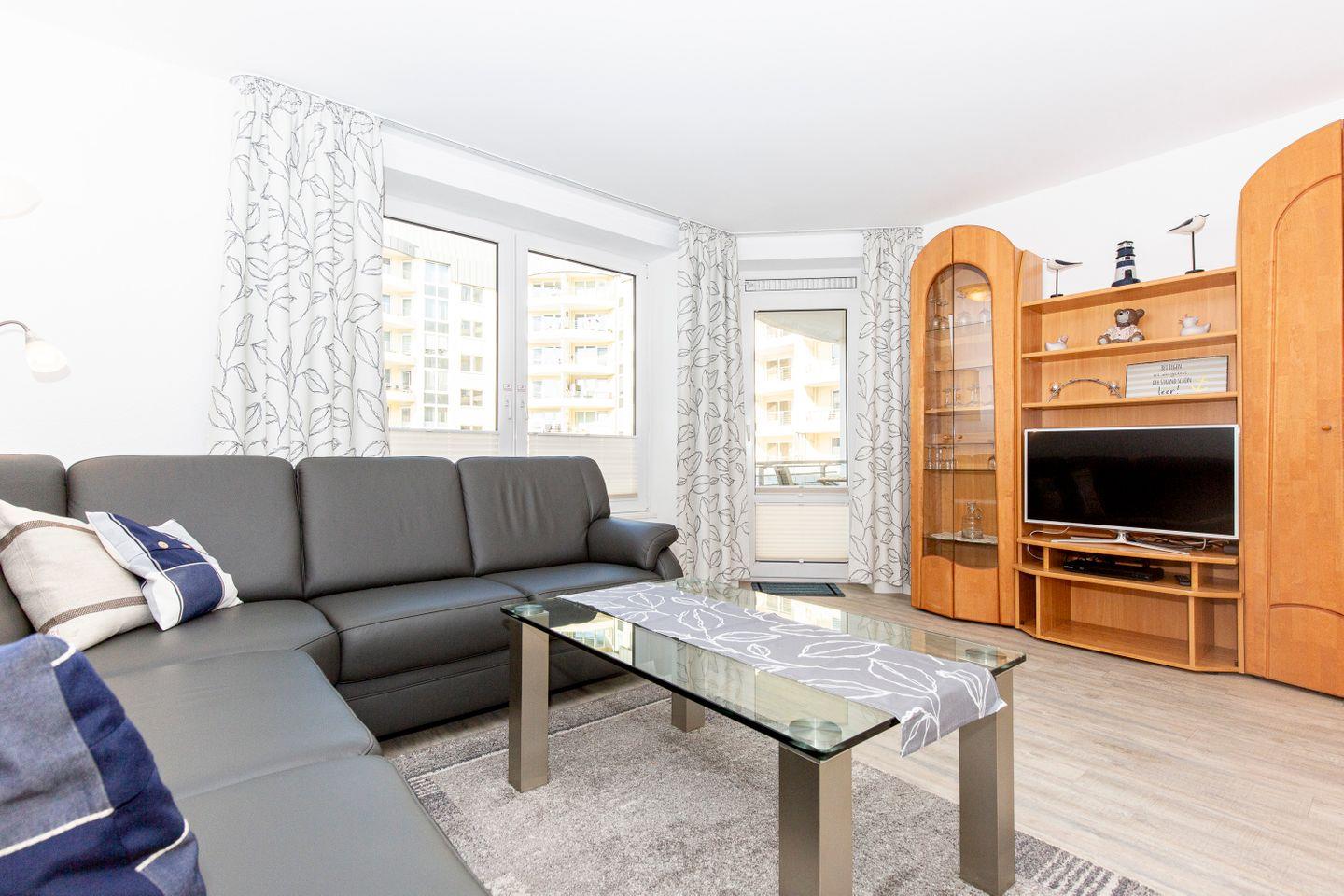Haus "Kurpark-Residenz", Typ D2, Appartement-Nr. "133", bis 4 Personen, 1. OG, Südseite (Parkseite),ca. 68 m² Wohnungsgröße, Wohnzimmer, separates Schlafzimmer mit Doppelbett, sep. Kinderzimmer mit Etagenbett (innenliegend), Dusche/WC, Gäste-WC, separate Küche mit Mikrowelle, Geschirrspüler und Backofen, Loggia, SAT-TV, WLAN Zugang im App., Tiefgaragenstellplatz, Nichtraucher, Haustiere sind nicht gestattet, Strandkorb im Sommer 2025.
