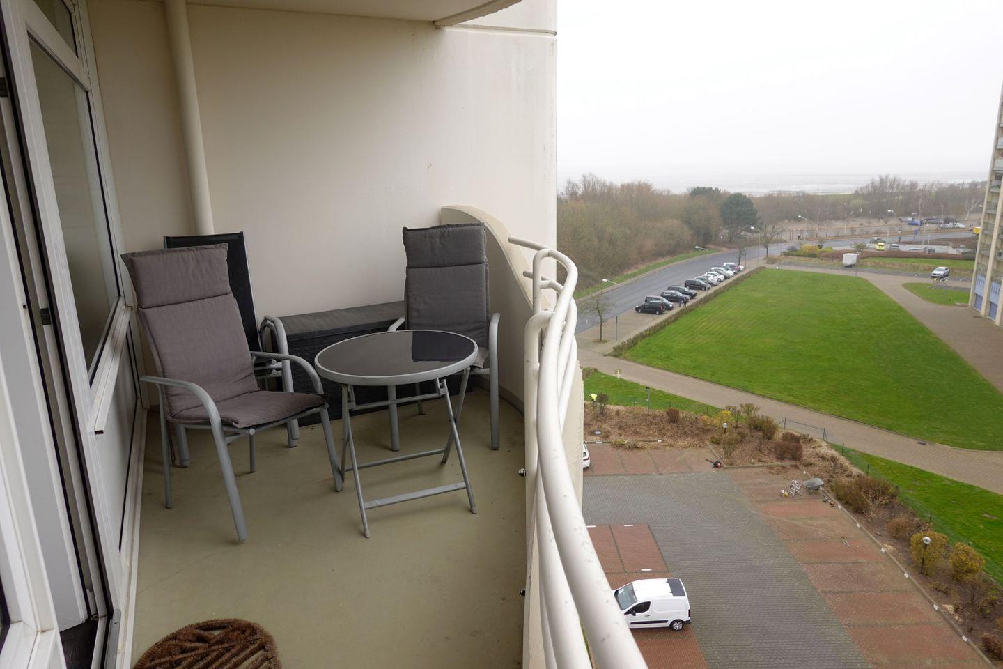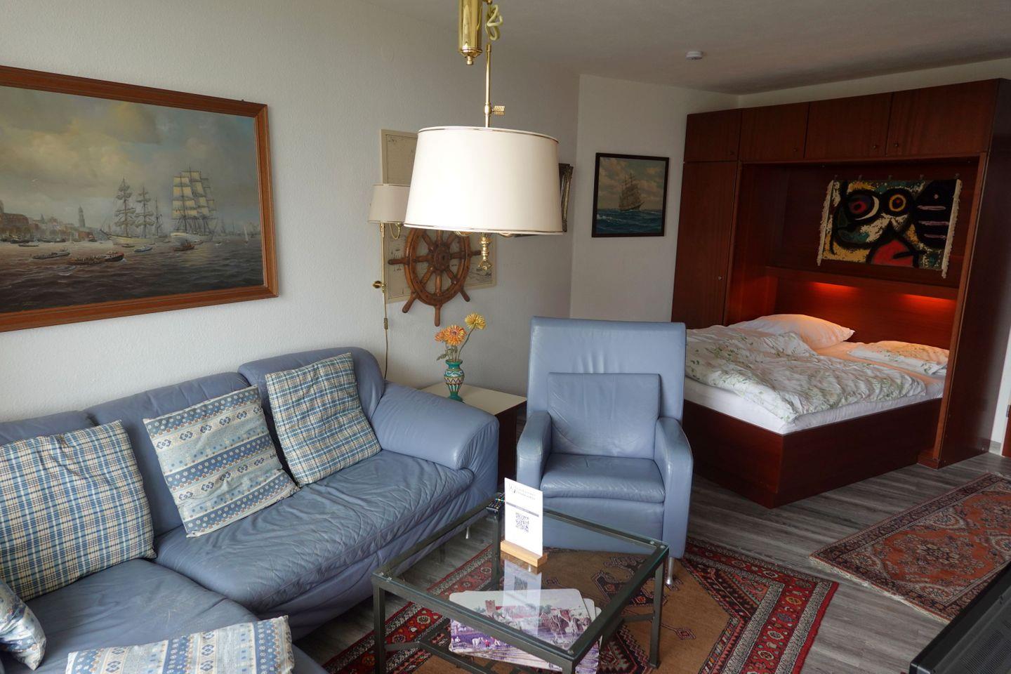 Haus "Lord Nelson", Typ 2, App.-Nr. "716", bis 4 Pers., 7.te Etage, ca. 40 qm Größe, Weltschifffahrtsweg (seitlicher Meerblick Richtung Elbe), Wohnbereich mit Doppelbett, separates kleines Kinderzimmer mit Etagenbett, Dusche/WC, Küchenzeile mit Mikrowelle, Geschirrspüler, Telefon, Kabel-TV, Balkon, Tiefgaragenstellplatz, kein WLAN