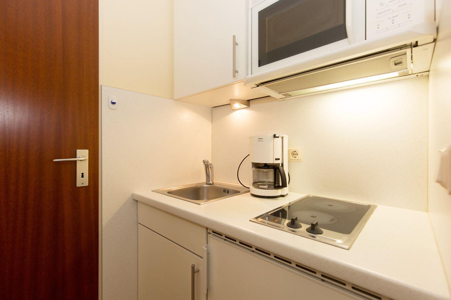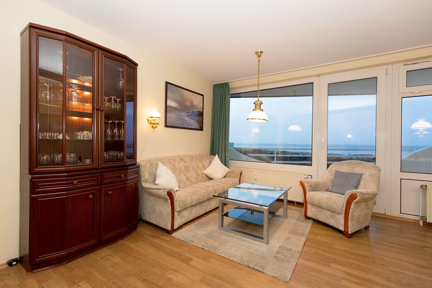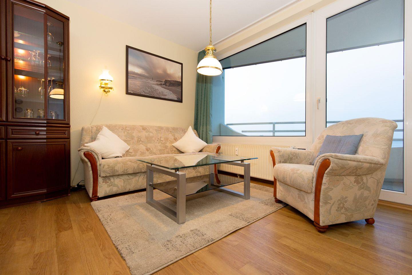 Haus "Lord Nelson", Typ 4, App.-Nr. "806", bis 2 Personen, 8. Etage, ca. 40 qm Größe, Weltnaturerbe Wattenmeer (Meerblick Richtung Neuwerk), Wohnbereich mit Schrankbett (einzeln klappbar), Dusche/WC, kleine Küchenzeile mit Abstellmöglichkeit unter einer Dachschräge, Kabel-TV, kostenloser W-Lan Zugang, Balkon, Haustiere nicht erlaubt, Nichtraucherwohnung,Tiefgaragenstellplatz.