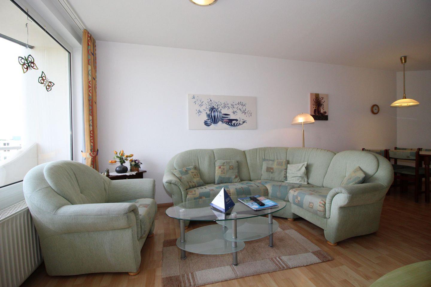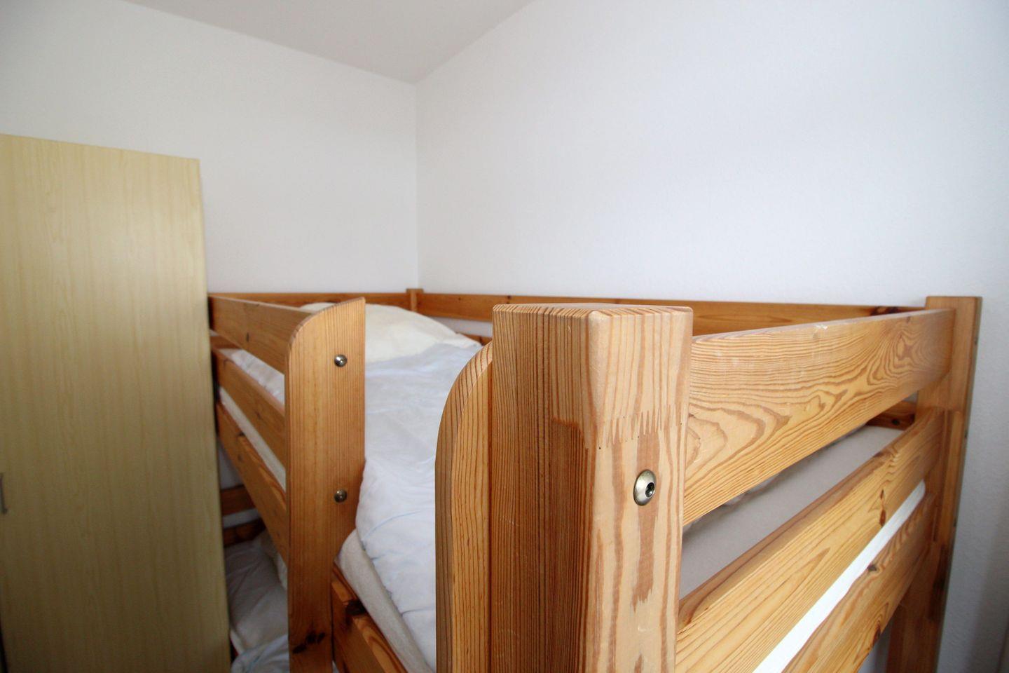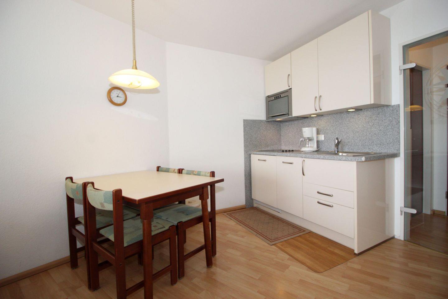 Haus "Lord Nelson", Typ 2, Appartement-Nr. "817", bis 4 Personen, 8. Etage, ca. 40 qm Wohnungsgröße, Weltschifffahrtsweg (seitlicher Meerblick Richtung Elbe), Wohnbereich mit Schrankbett, separates kleines Kinderzimmer mit Etagenbett, Dusche/WC, Küchenzeile mit Geschirrspüler und Mikrowelle/4 Platten-Ceranfeld, Telefon, Kabel-TV, Nichtraucher App., Balkon, Tiefgaragenstellplatz, Strandkorb im Sommer 2025, kostenloser WLAN-Zugang.