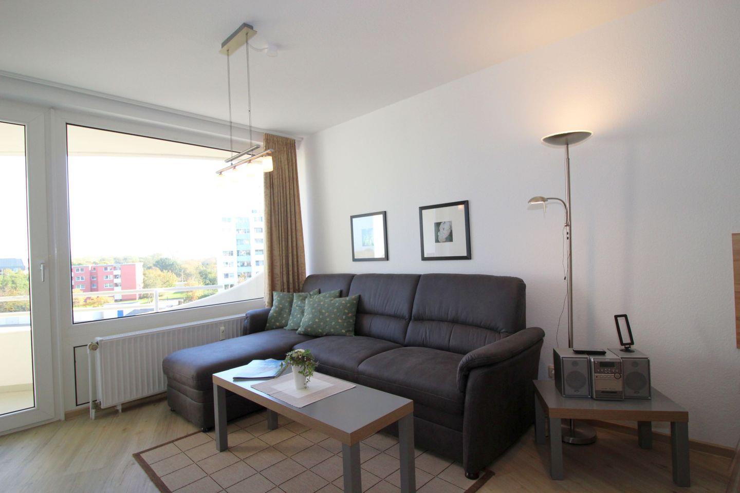 Die 2-Zimmer Ferienwohnung besticht mit einer stilvollen, hellen Einrichtung und lädt zu geselliger Urlaubszeit ein. Auf 40 m² bietet das Feriendomizil Platz für bis zu vier Personen und eignet sich somit optimal für Familien. Das Zentrum der Ferienwohnung ist der Wohnbereich mit zwei hellen, bequemen Ledersofas. Dank der Top-Lage können Sie in wenigen Gehminuten den Strand oder die Kugelbake erreichen. Ausflügen zum Hafen oder der "Alten Liebe" steht ebenfalls nichts im Weg.