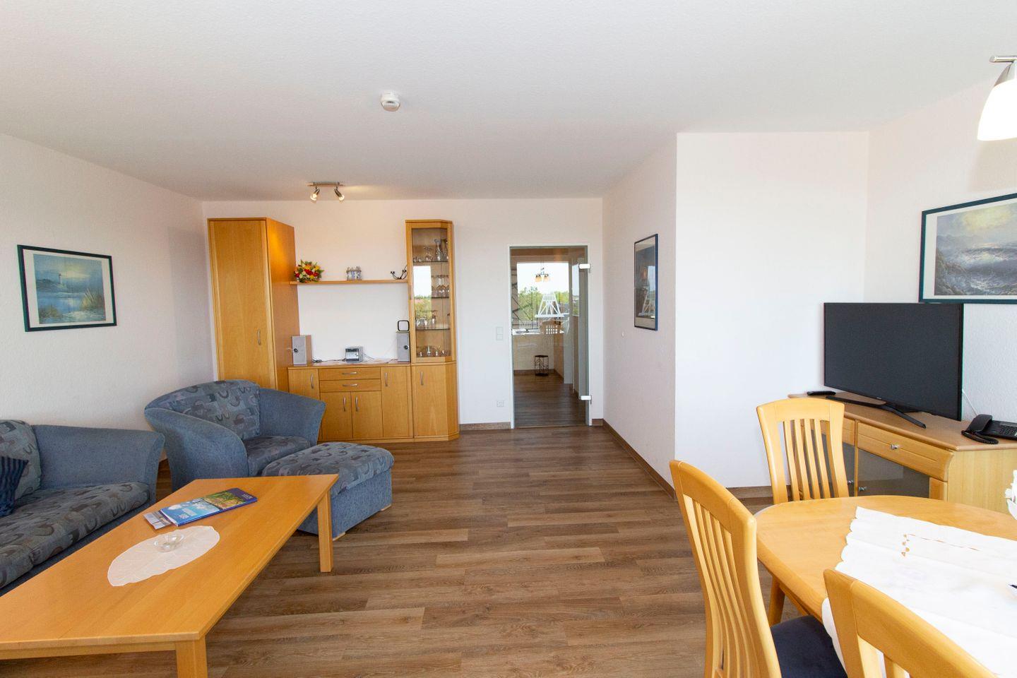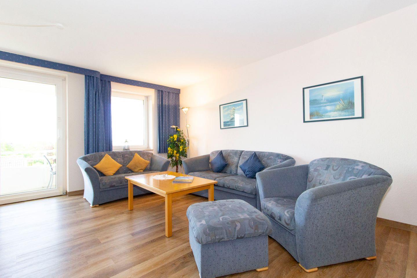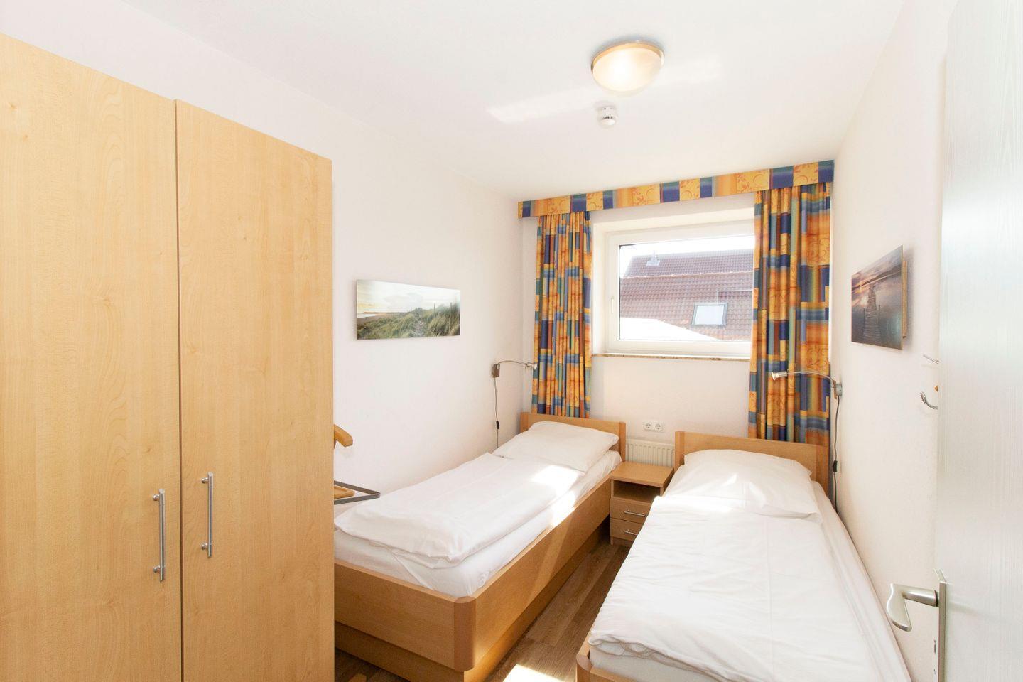 Haus "Trafalgar", Typ D, App.-Nr. 328, bis 6 Pers., 3. Etage, ca. 75 qm, Südseite (ohne Meerblick), , Wohn/Schlafraum mit Schlafcouch, Schlafzimmer mit Doppelbett, sep. Schlafzimmer mit zwei Einzelbetten, sep. Küche mit Ceranfeld, Geschirrspüler und Mikrowelle, Dusche/WC, Balkon, Telefon, Kabel-TV, W-Lan im App., Tiefgaragenstellplatz, Haustiere sind nicht gestattet, Strandkorb im Sommer 2025