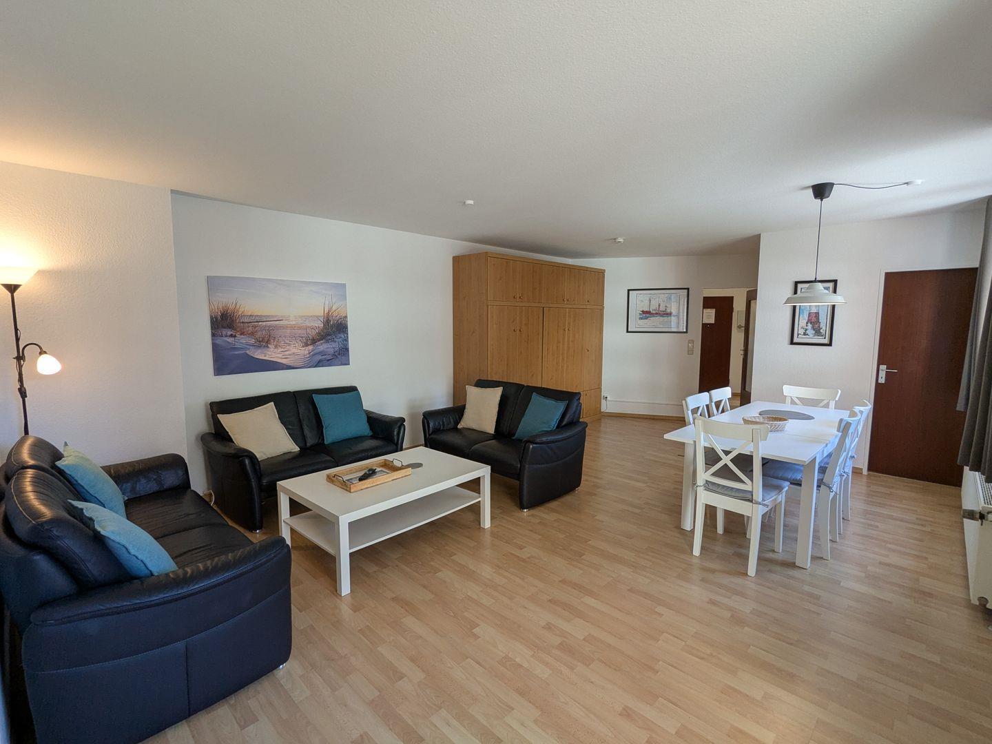 Die großzügige 3-Zimmer-Ferienwohnung (hundefreundlich) im Haus Lord Nelson punktet mit Großzügigkeit, Wohlfühlambiente, einem sonnenreichen Südbalkon und absoluter Top-Lage.