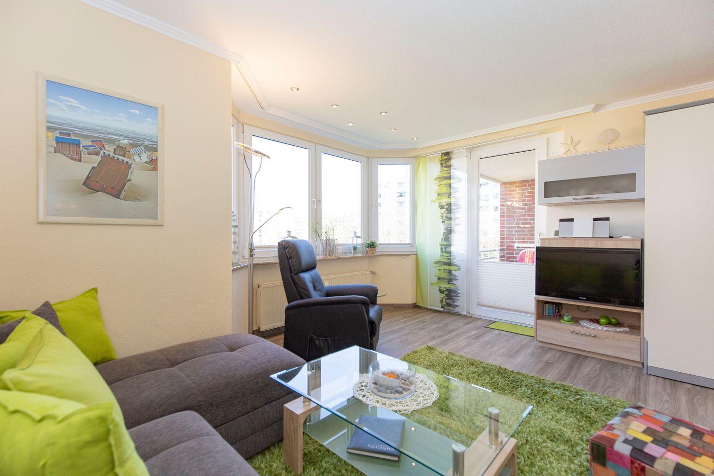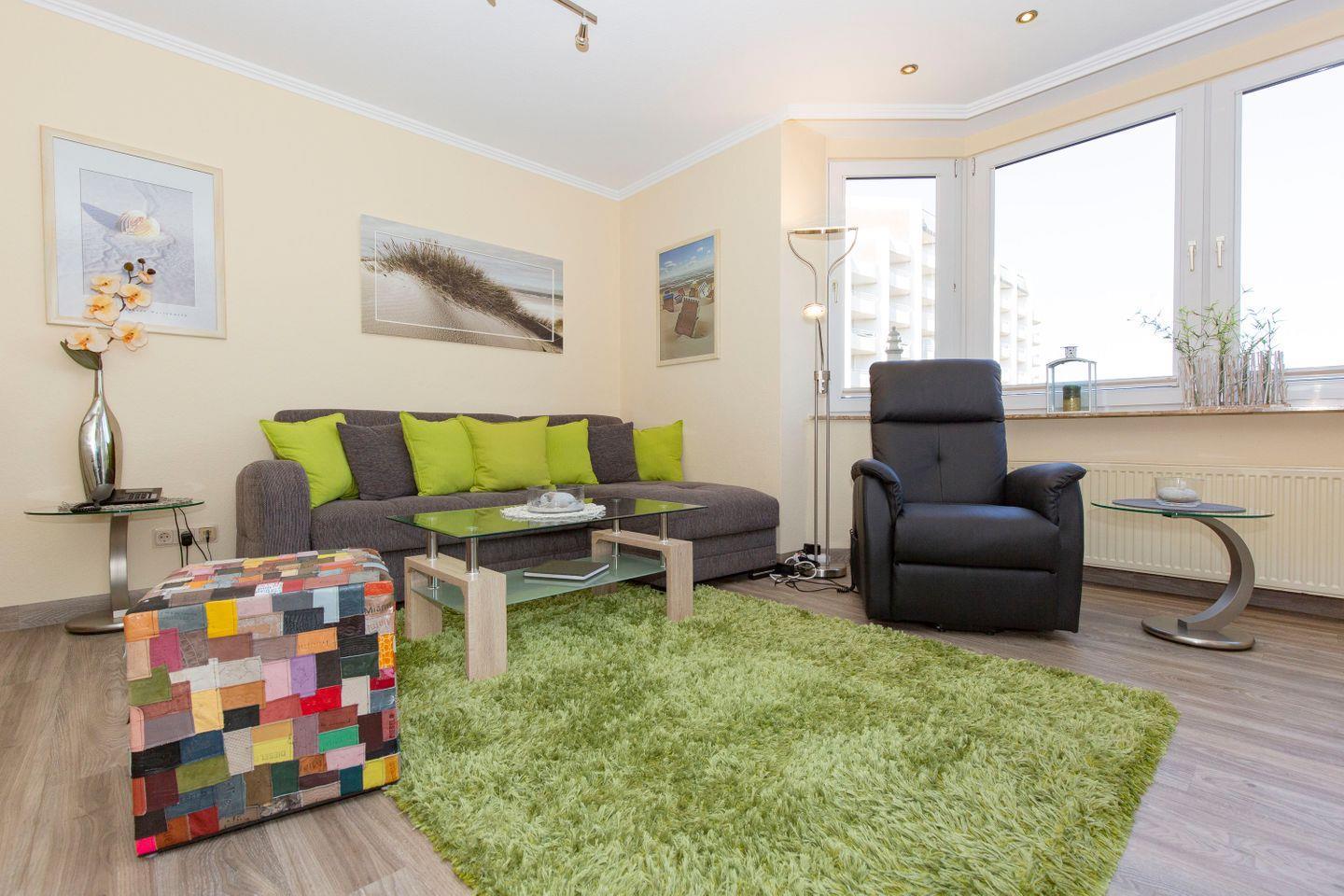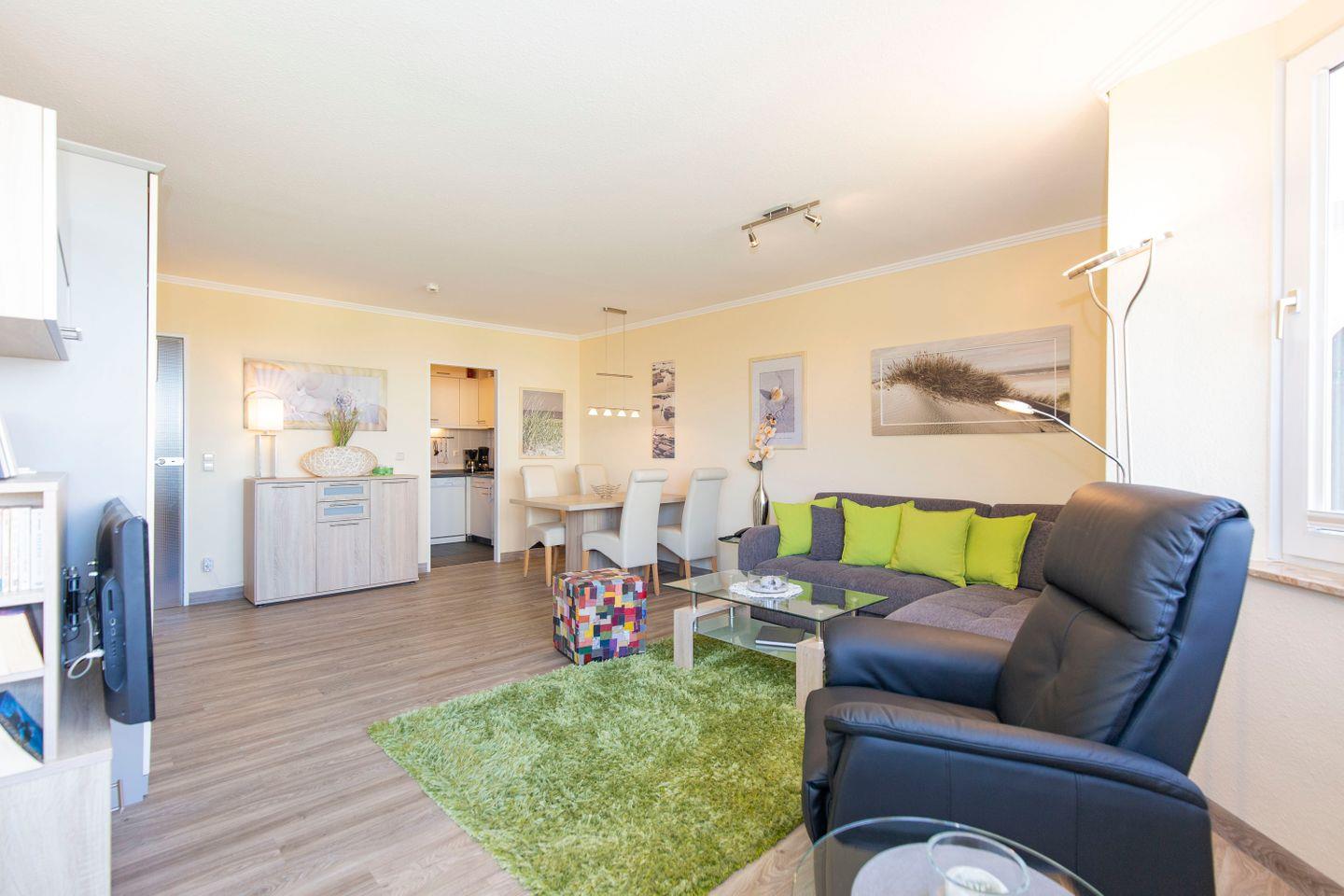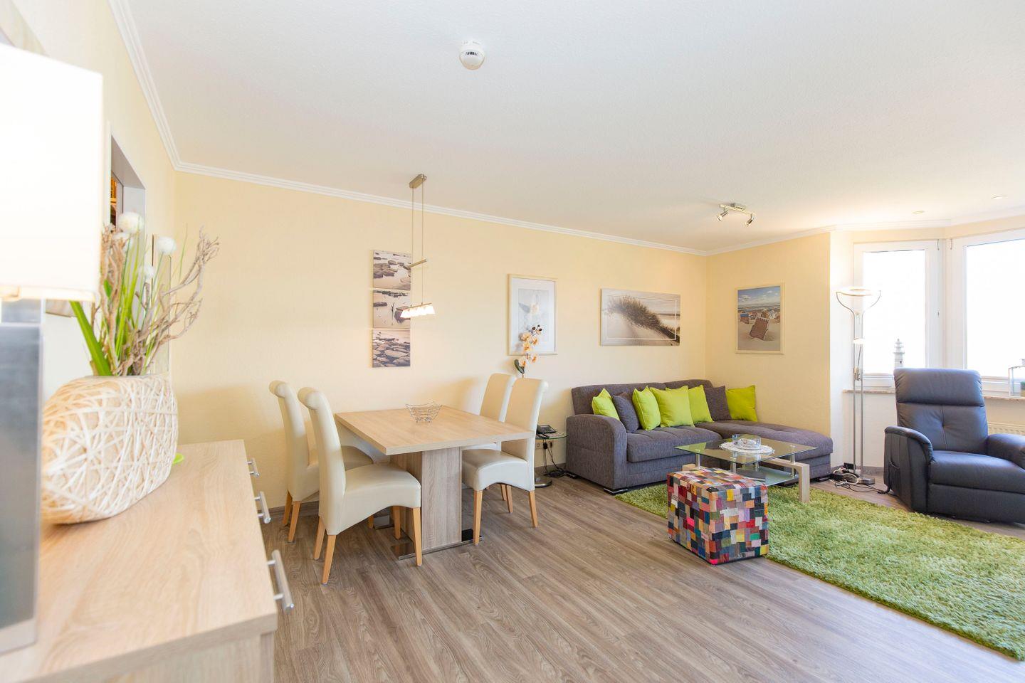 Die moderne, dezente Einrichtung gepaart mit bunten Farbakzenten kreieren echte Wohlfühlatmosphäre, die Grundlage für einen entspannten und erholsamen Urlaub an der Nordsee. Auf 55 m² finden in dieser FeWo bis zu 4 Gäste Platz - ideal für Familien oder Paare. Hier erwartet unsere Urlaubsgäste eine optimale Lage in Strandnähe.