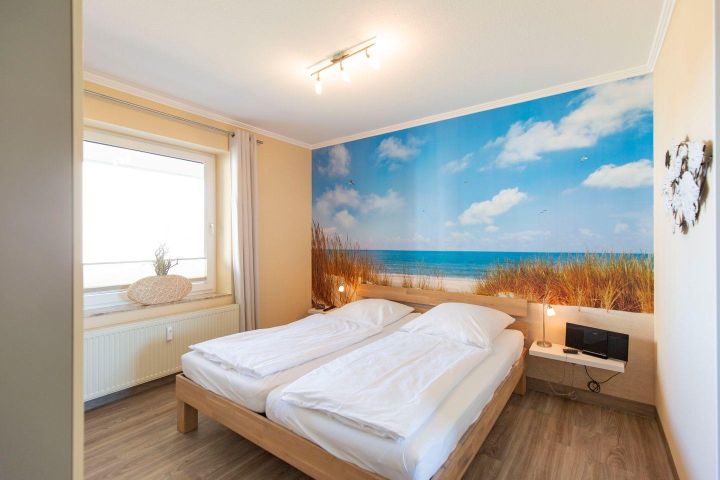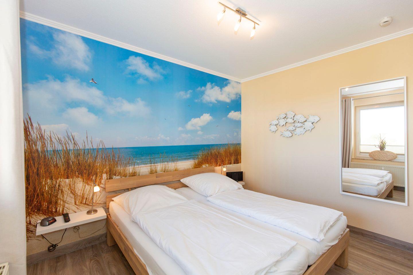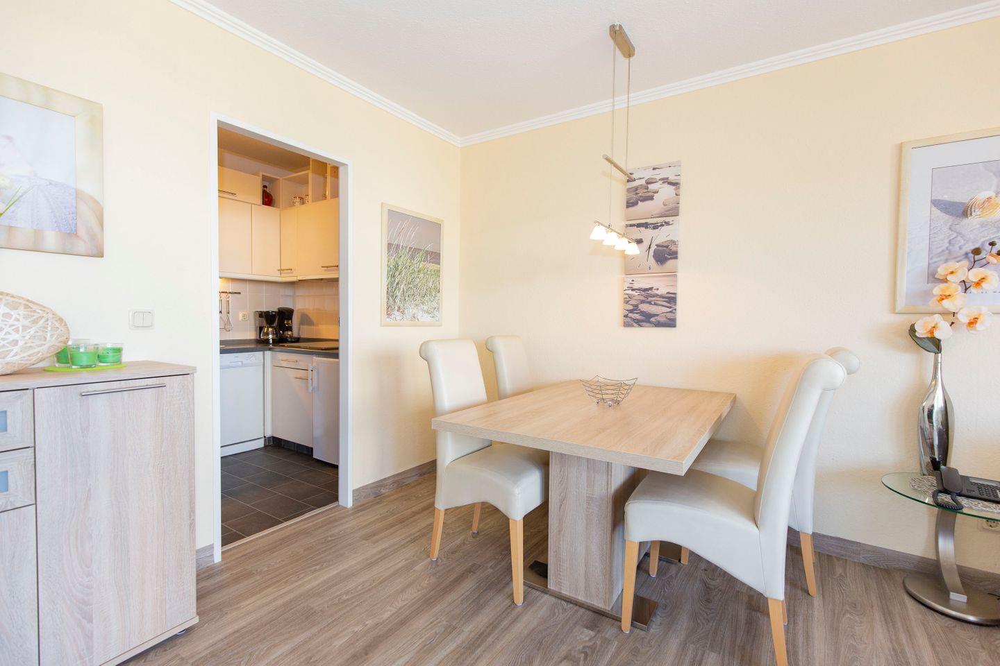 Haus "Trafalgar", Typ C, App.-Nr. "251", bis 4 Personen, ca. 55 qm Größe, 2. Etage Nordseite (ohne Seesicht), Schlafzimmer mit Doppelbett, Wohnbereich mit Schrankbett, Bad/WC, separate Küche mit Mikrowelle und Geschirrspüler, Balkon, Telefon, Kabel-TV, 2. TV Schlafzimmer, kostenl. WLAN-Anschluss, Tiefgaragenstellplatz, Nichtraucherwohnung, Haustiere sind nicht gestattet, Strandkorb im Sommer 2025.