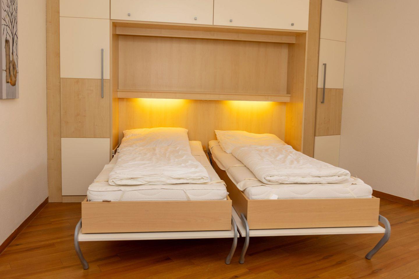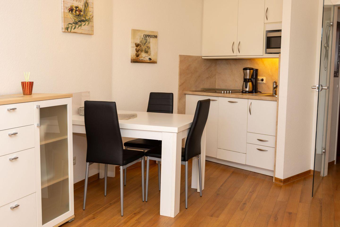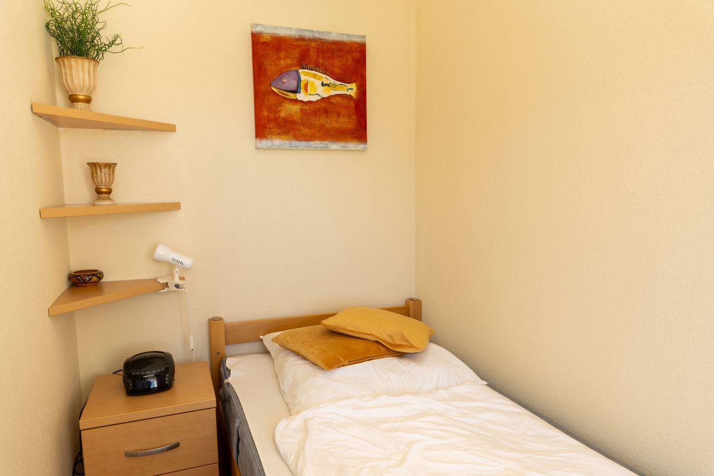 Haus "Lord Nelson", Typ 2, App-Nr. "115", bis 3 Personen, 1. Etage, Ostseite (ohne Meerblick/Richtung Elbe), Wohnbereich mit Schrankbett, separates kleines Kinderzimmer mit Einzelbett, Dusche/WC, Küchenzeile mit Mikrowelle/Grillfunktion, Geschirrspüler und Ceranfeld, ca. 40 qm Wohnungsgröße, Nichtraucher App., Balkon, Telefon, Kabel-TV, kostenl. W-Lan Zugang im App., Haustiere sind auf Anfrage gestattet, Tiefgaragenstellplatz, Strandkorb im Sommer 2025