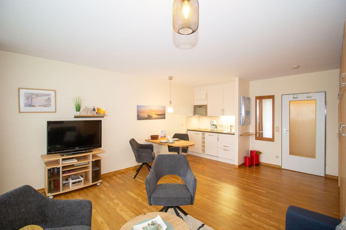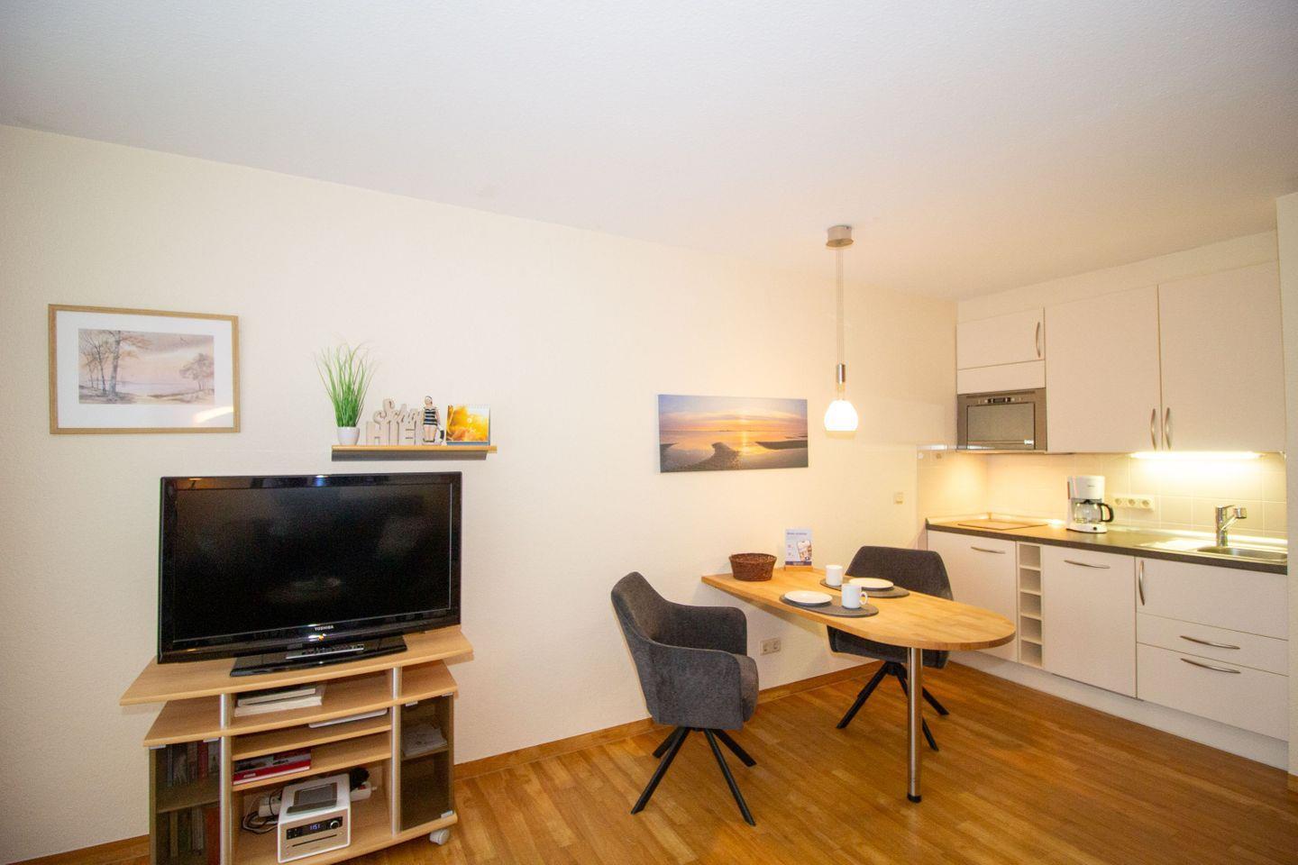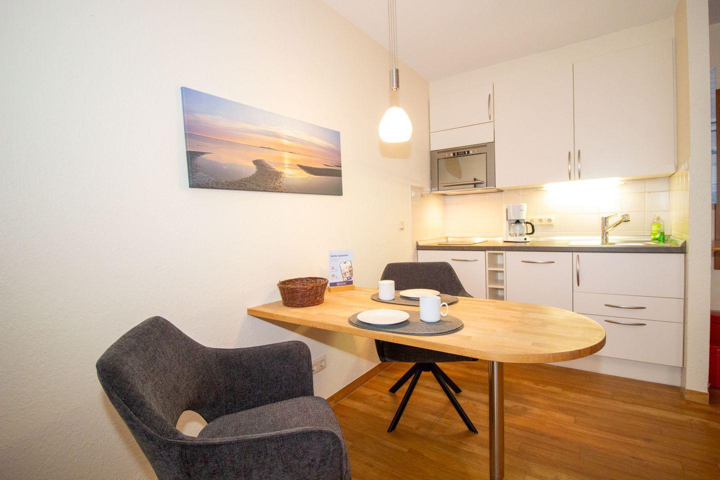 Auf 34 m² erwartet unsere Urlaubsgäste in dieser 1-Zimmer-Ferienwohnung der perfekte Rückzugsort im Urlaub an der Nordsee. Neben der strandnahen Lage punktet die FeWo zum Wohlfühlen mit einer gemütlichen Einrichtung und einem eigenen Balkon, auf dem die Gäste jederzeit die frische Nordseeluft genießen können. Mit Platz für bis zu 4 Personen ist die Ferienwohnung ideal für Paare oder Singles.
