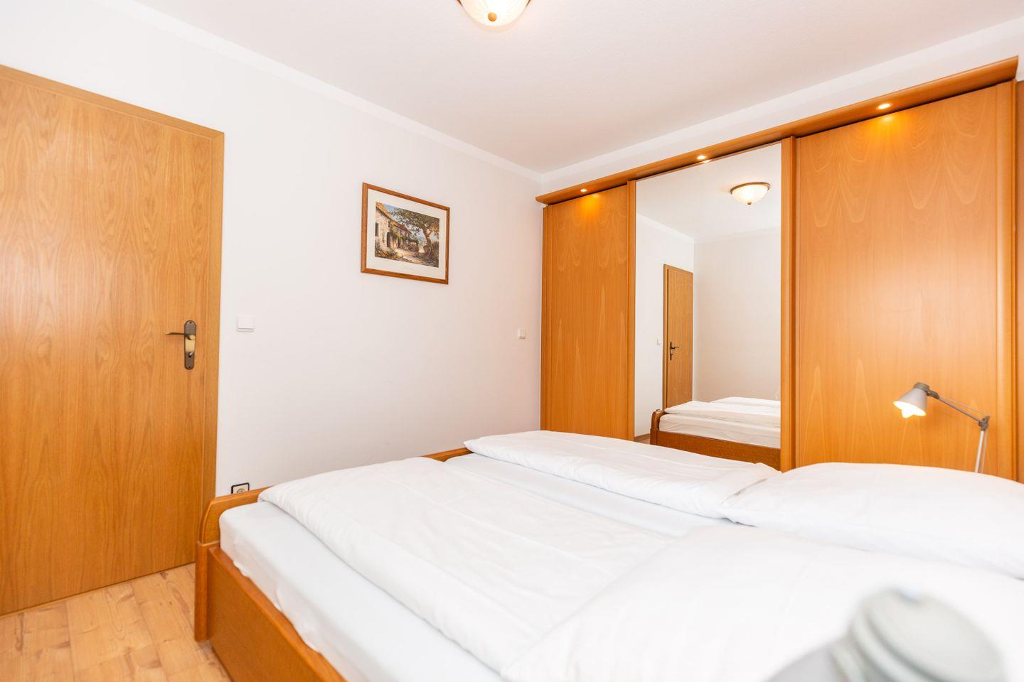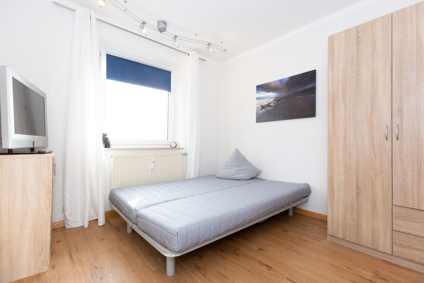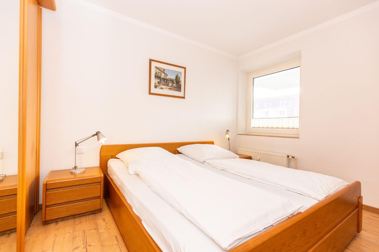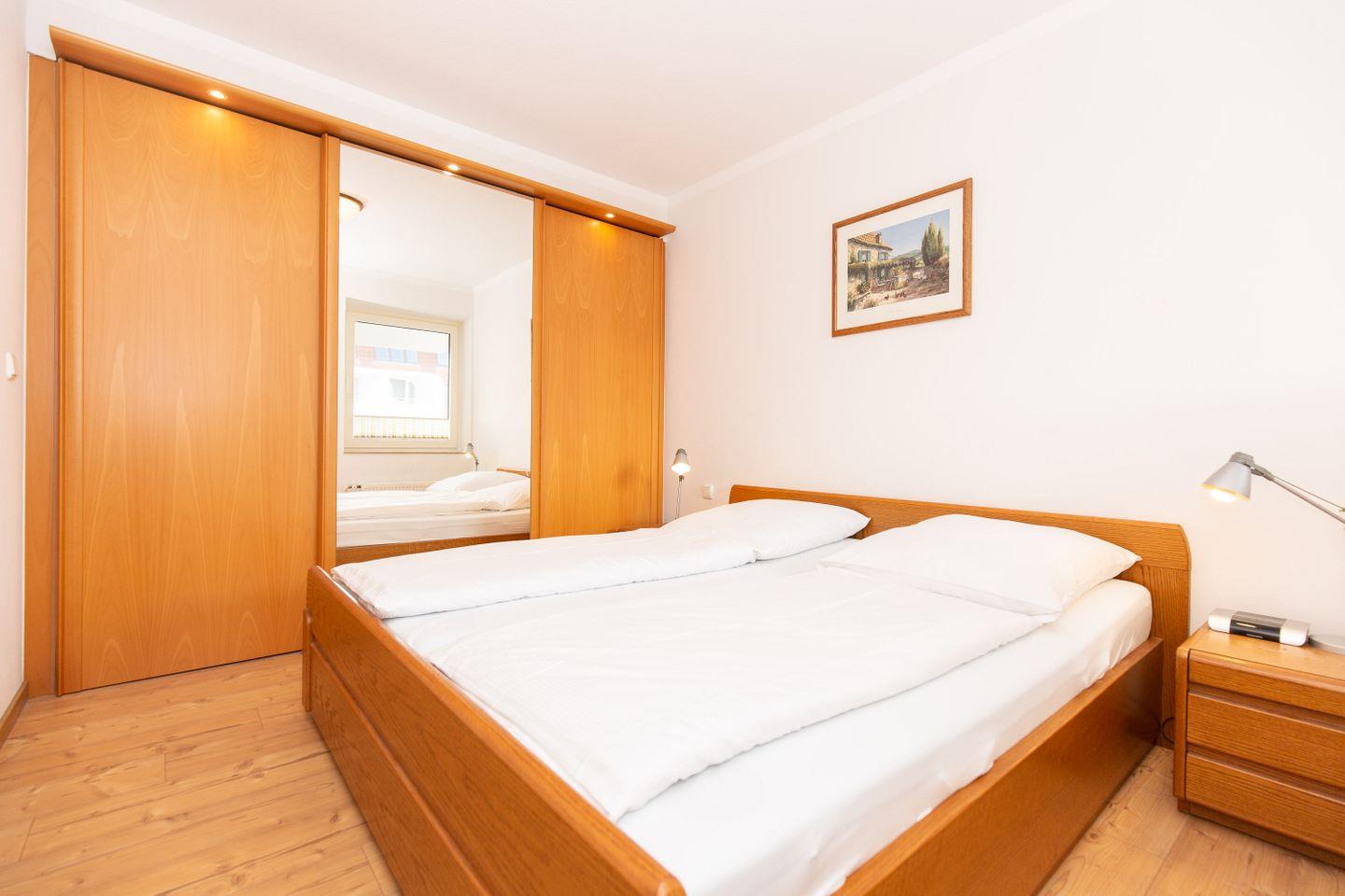 Haus "Strandnixe", Typ 3, App. Nr. 301, 3. Etage, ca. 55m², Ostseite (eingeschränkter Meerblick), Schlafzimmer mit Doppelbett und TV-Gerät, 2. Schlafzimmer mit franz. Doppelbett und TV-Gerät, sep. Küche mit Backofen, Geschirrspüler, Mikrowelle und 4 Platten-Ceranfeld, Dusche/WC und Haartrockner, 2 Balkone, Kabel-TV, WLAN, Haustiere sind nicht gestattet, Nichtraucherappartement, Außenstellplatz