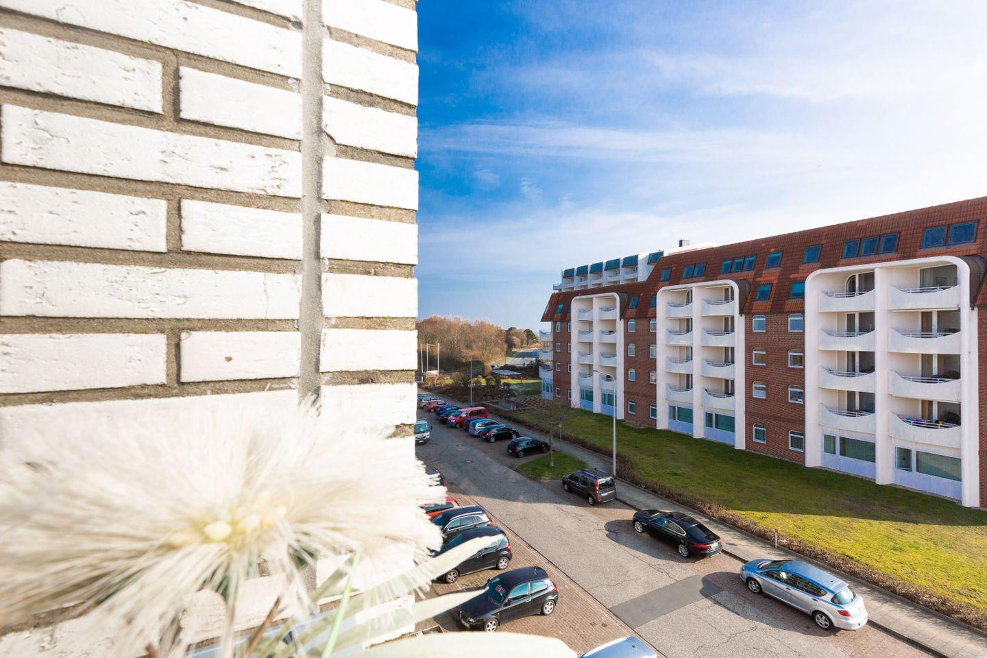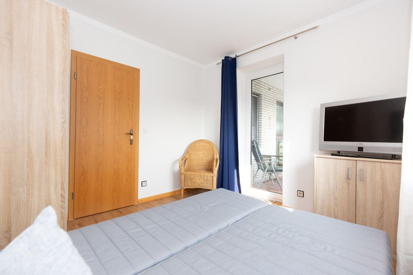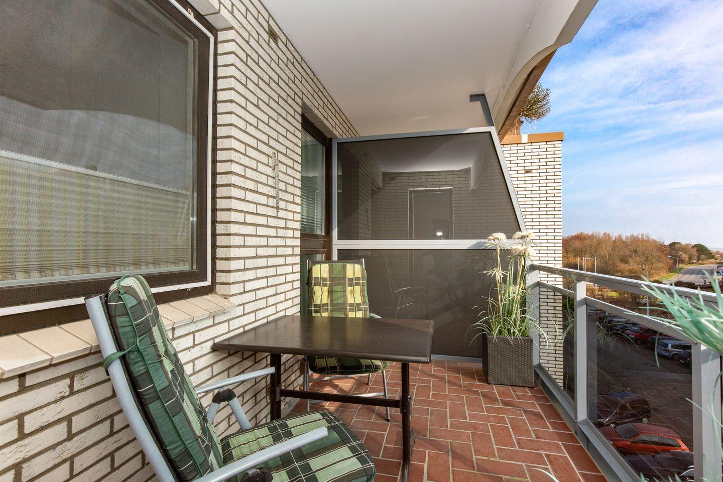 Es gibt einen Balkon vom Wohnbereich und einen weiteren vom 2. Schlafzimmer aus mit seitlichem Blick auf den Deich.