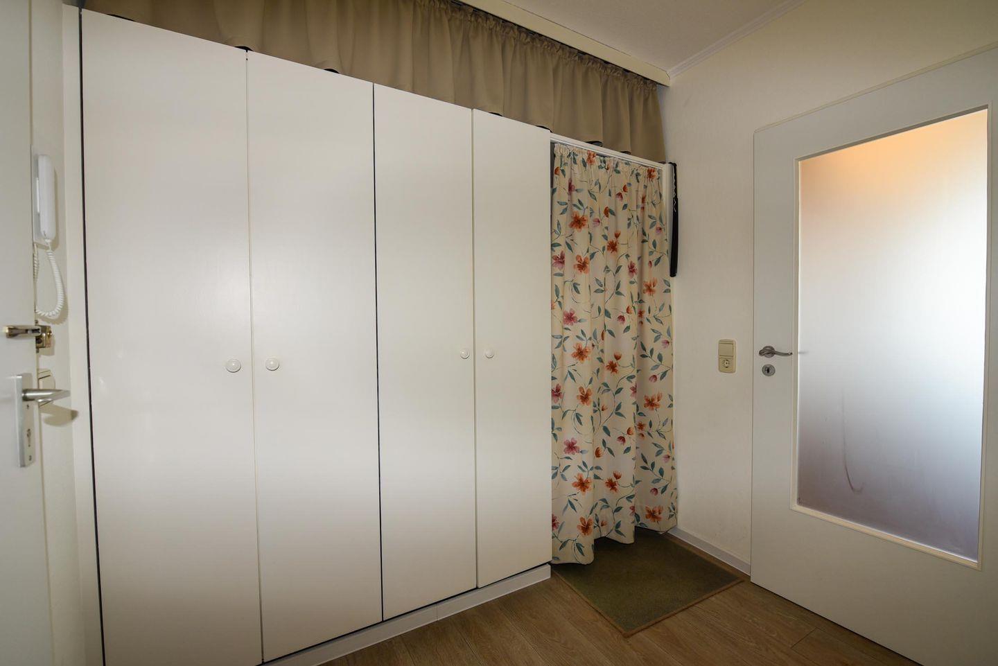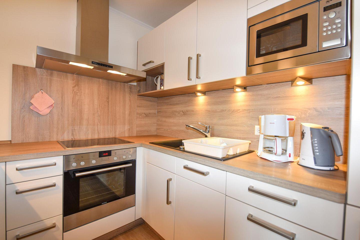 Die Wohnung ist geschickt aufgeteilt in einen gemütlichen Schlaf-/Wohnbereich mit einem Schrankbett sowie einer gut ausgestatteten Küchenzeile, die u.a. einen Kühlschrank, Kaffeemaschine, Wasserkocher, Toaster, Mikrowelle und E-Herd beinhaltet. Ein separates Schlafzimmer mit zwei Einzelbetten und ein Badezimmer mit Dusche und WC stehen Ihnen ebenfalls zur Verfügung. Ein Flachbildfernseher sorgt für Unterhaltung, und der Balkon lädt dazu ein, die frische Meeresluft zu genießen. Ein eigener Pkw-Tiefgaragenstellplatz ist für Ihre Bequemlichkeit vorhanden.