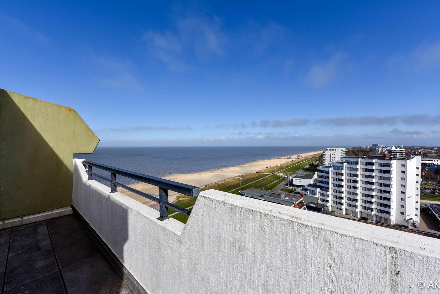 Die Wohnung Nr. 123 im Haus Panorama befindet sich in der 10. Etage und bietet einen atemberaubenden direkten Seeblick auf den Seeschifffahrtsweg sowie die Elbmündung.