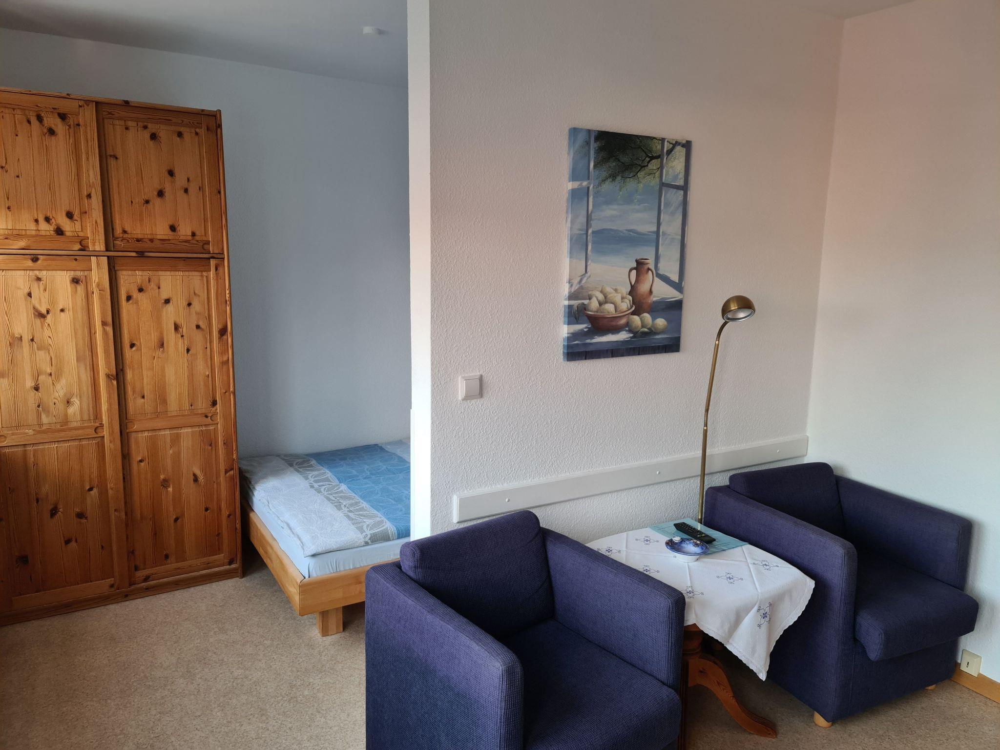 The 28m² one-room apartment is on the second floor. It is fully equipped and can accommodate up to two people in a combined living room and bedroom. The French bed 140cm wide is separated off by a ¾ wall. The kitchen unit is equipped with a ceramic hob and satellite TV and radio are provided. The bathroom is fitted with a shower and WC. The apartment also has a balcony and a car parking space. Only dogs are allowed as pets.