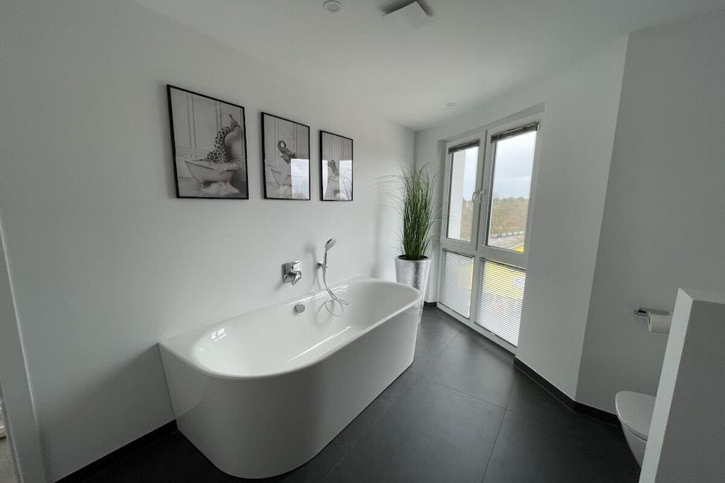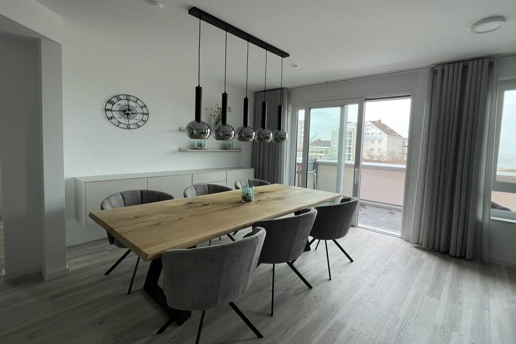 Ferieleiligheten har tre komfortable soverom, alle møblert med boxmadrass av høy kvalitet. Ett av soverommene har også en privat solrik balkong og en vakker utsikt over havet. Hovedsoverommet har også en fantastisk havutsikt og gulv-til-tak-vinduer. Badene har regndusj, badekar og toalett for ditt fulle velvære. Sengetøy og håndklær er inkludert i prisen. Mens kjøkkenet tilbyr full feriekomfort, inviterer spisebordet og den komfortable sittegruppen deg til å slappe av. Fra den lyse stuen og spisestuen tilbyr de store vinduene en fantastisk utsikt over havet og turistaktiviteten.