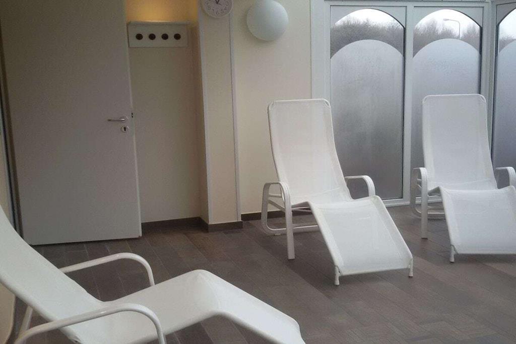 Første etasje: (avslapningsområde(, badstue, Tyrkisk bad, badestamp, svømmebasseng)) Mellomliggende etasje: (drying room(tørketrommel, vaskemaskin, strykebrett, strykejern, tørkeskap)) , , Kjøkken(, , Åpent kjøkke, brødrister, kaffetrakter, mikrobølgeovn, kjøleskap, fryser), soveværelse(, , 1 persons sovesofa, dobbeltseng, TV, TV, radio), bad(, WC, dusj, håndvask), oppbevaringsrom(tørkeskap), garasje, Internett-tilgang, tørketrommel, vaskemaskin, balkon(Plen, hagemøbler, sandkasse, Huskestativ), oppvarming, hage(Grill center, Strand, Plen, TV), parkering, sykler tilgjengelig, strykejern, tørkeskap, telefon