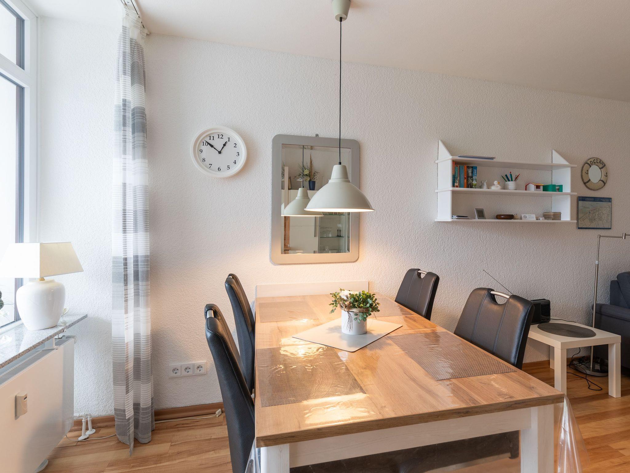 Die Ferienwohnung Haus Essen, Whg. 7 befindet sich in einer verkehrsberuhigten Sackgasse, ca. 600 m vom Ortskern von Duhnen, dem Nordseestrand [nbsp]und [nbsp]der[nbsp] kilometerlangen Promenade entfernt.[nbsp] Auf einer Fläche von 45 m² bietet sie Platz für maximal 4 Personen. [nbsp]Im[nbsp] Wohnzimmer befindet sich eine bequeme Sitzgarnitur mit TV-Flachbildschirm, eine Küchenzeile mit Kühlschrank, Ceran-Kochfeld, Kaffeemaschine, Wasserkocher, Toaster und ein Eßtisch mit 4 Stühlen sowie zwei Schrankbetten. [nbsp]Weiter steht ein Badezimmer mit Dusche und WC sowie ein Schlafzimmer mit Etagenbett zur Verfügung. Der direkte Zugang zur überdachten Terrasse in Richtung Westen, dem Garten, einer Liegewiese sowie ein PKW-Stellplatz und Fahrradstand direkt am Haus runden das Angebot ab . [nbsp]Die Wohnung ist als Nichtraucherwohnung ausgewiesen und Haustiere sind nicht erlaubt.
