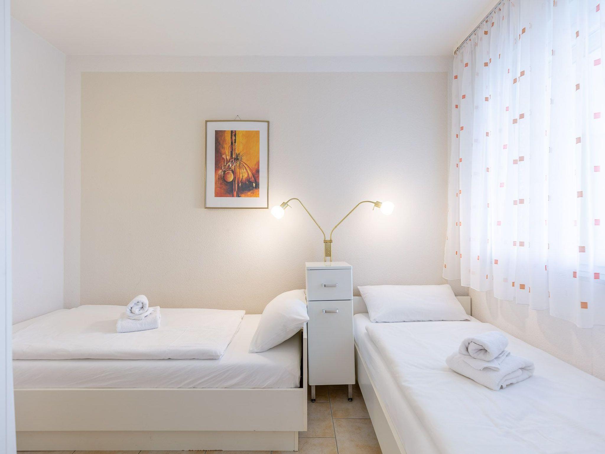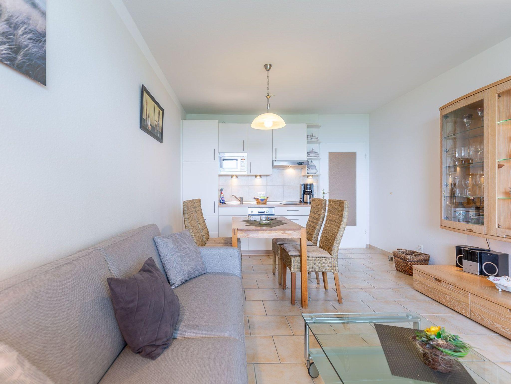 Der Flachbildfernseher im Wohnbereich gewährleistet, dass Sie auch im Urlaub nicht auf Ihre Lieblingsserie verzichten müssen. Darüber hinaus bietet der kombinierte Wohn- und Essbereich eine Küchenzeile mit Geschirrspüler, 2-Plattenherd, Kaffeemaschine, Mikrowelle, Wasserkocher und weiteren Küchenutensilien. Des Weiteren verfügt Ferienwohnung Nordseeluft über ein separates Schlafzimmer mit zwei Einzelbetten. Das separate Schlafzimmer mit Verdunklungsmöglichkeit garantiert einen geruhsamen Schlaf. Im Wohnbereich lädt ein Sofa und Sessel zu einem gemütlichem Verweilen ein. Das moderne sowie seniorengerechte Bad ist mit einer ebenerdigen Dusche ausgestattet. Zudem können Sie auf dem Balkon die frische Nordseeluft spüren, den Ausblick genießen und die Zeit vergessen.