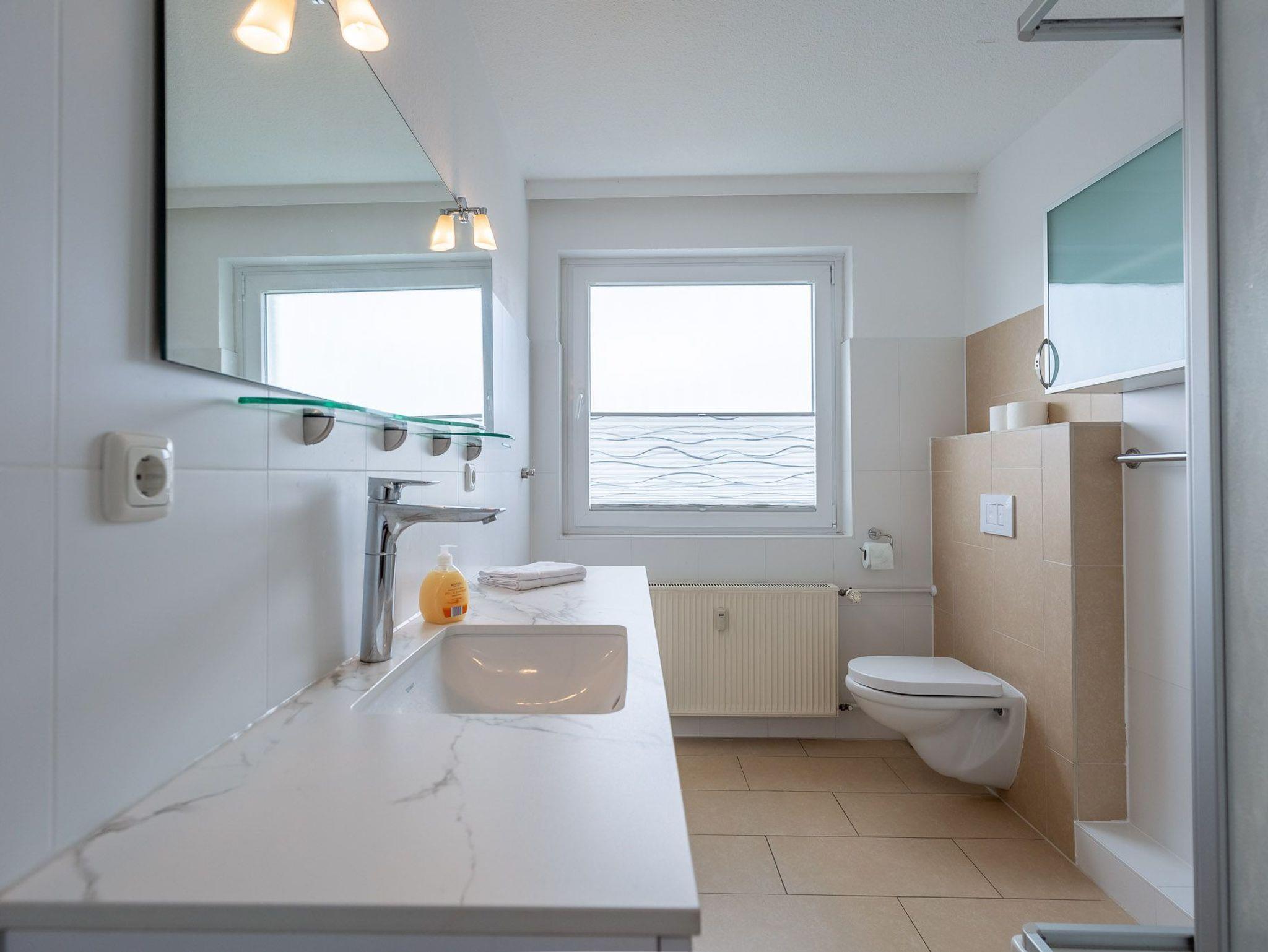 Dank kostenlosem WLAN können Sie direkt recherchieren, welches Schiff gerade Ihr Wohnzimmerfenster passiert. Der LCD Fernseher im Wohnbereich gewährleistet, dass Sie auch im Urlaub nicht auf Ihre Lieblingssendung verzichten müssen. Eine echte Rarität ist der umlaufende Balkon der Eck-Ferienwohnung. Bei gutem Wetter ist der Balkon eine wahre Freiluft-Nordseeloge mit Meerblick.