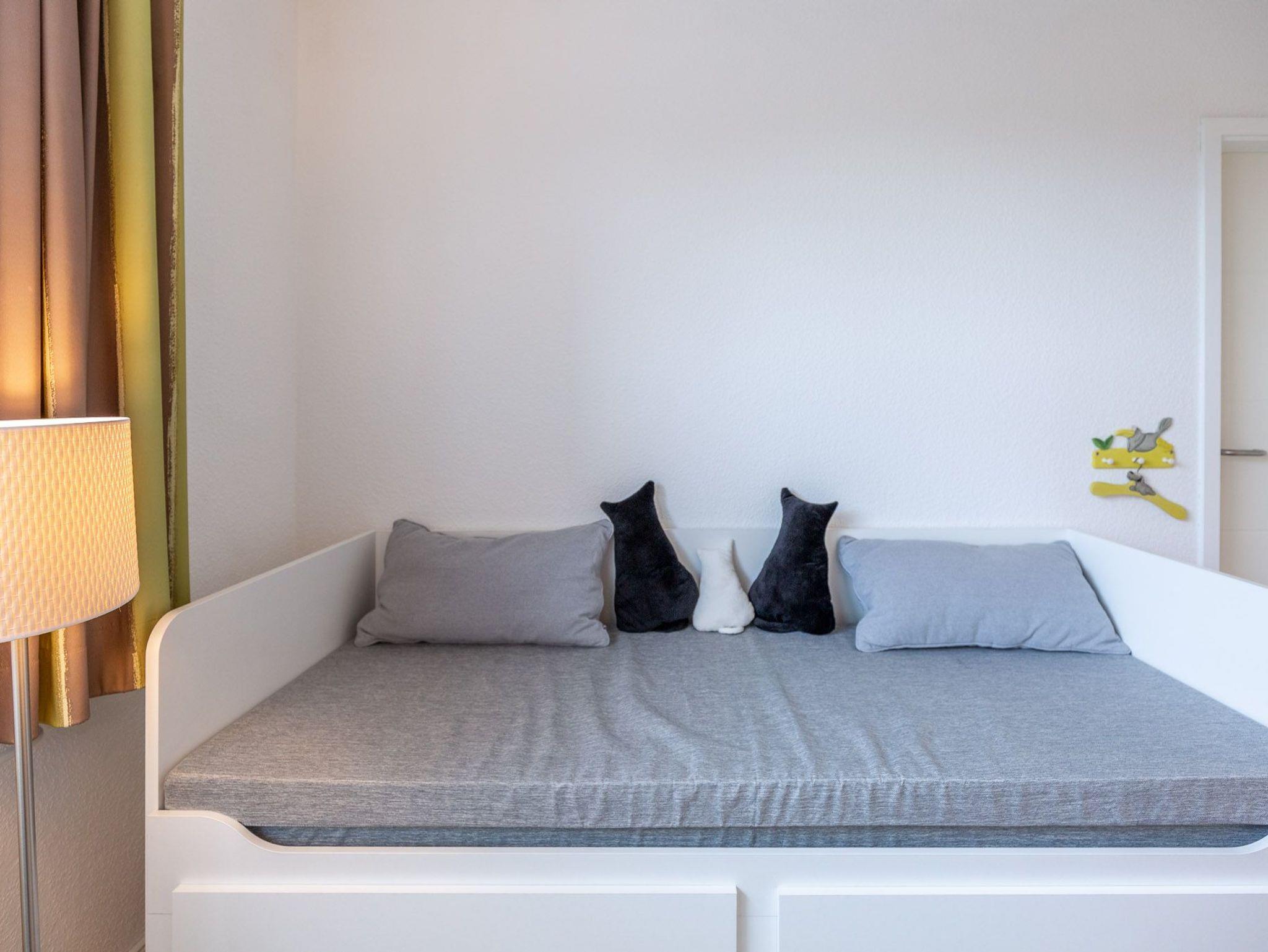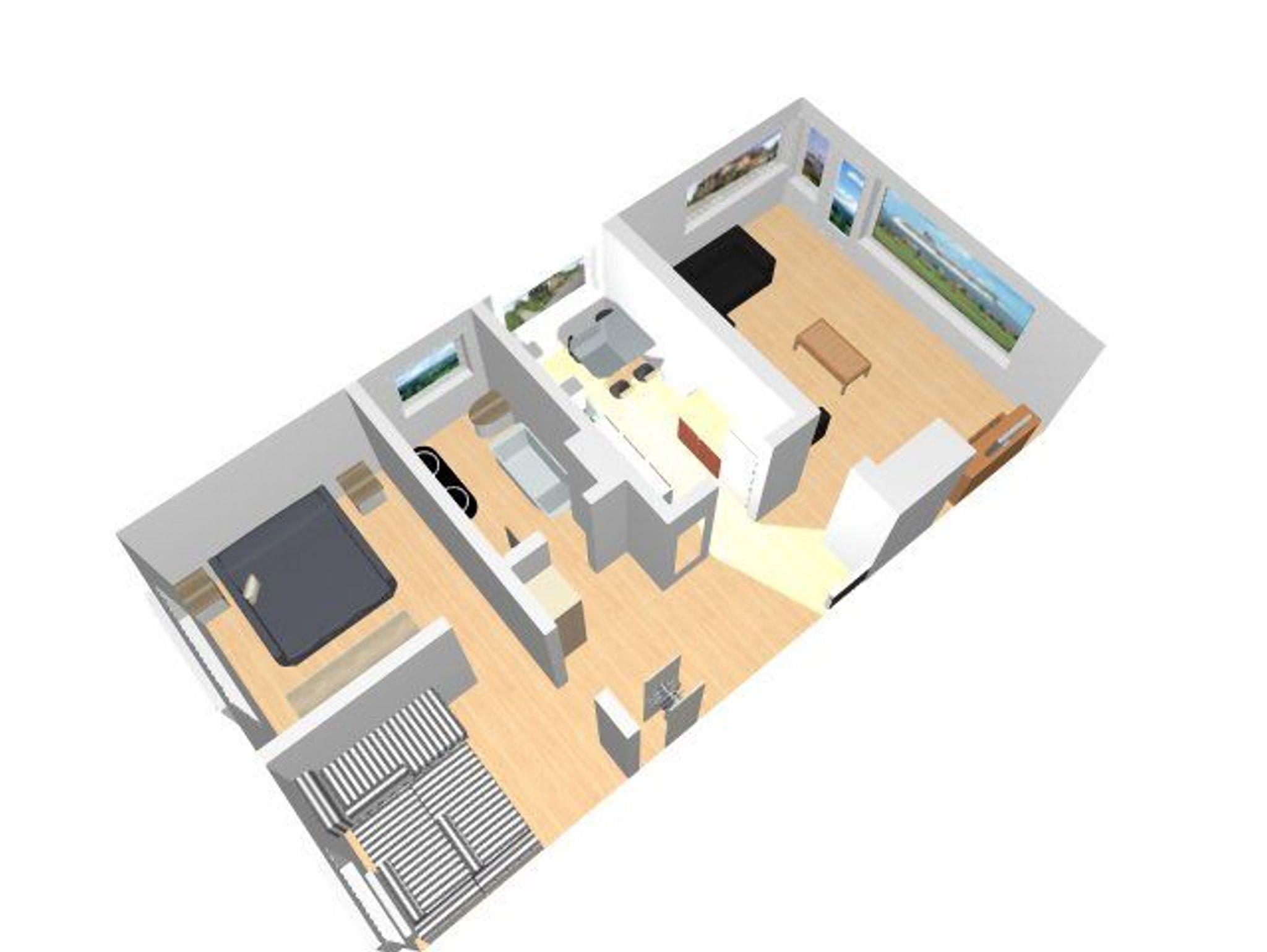 Ein separates Schlafzimmer mit Doppelbett sowie ein weiteres separates Schlafzimmer mit Schlafsofa sorgen für einen erholsamen Schlaf. Die Schlafzimmer lassen sich verdunkeln, sodass Sie nicht von der Morgensonne geweckt werden. Das geräumige Bad mit Dusche und WC verfügt über ein Fenster zum Belüften.