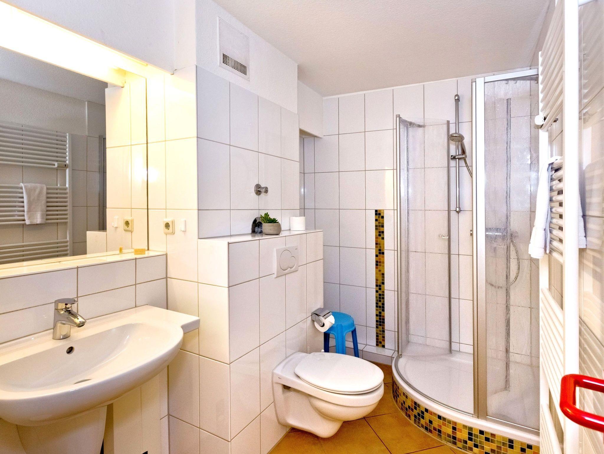 2-Raum-Eckwohnung auf ca. 42m², 2. Etage, schön renoviert und komplett ausgestattet bis 4 Pers., 1 Schlafzimmer mit 2 Einzelbetten, 1 kombiniertes Wohn/Schlafzimmer mit Doppelbetteckcouch, SAT-TV, kostenloses W-Lan, neue Küchenzeile mit Gefrierfach, Mikrowelle und Geschirrspüler, Dusche/WC, Flur, Balkon (ost), Nichtraucher, keine Haustiere, Pkw-Stellplatz #213 auf dem Außengelände.