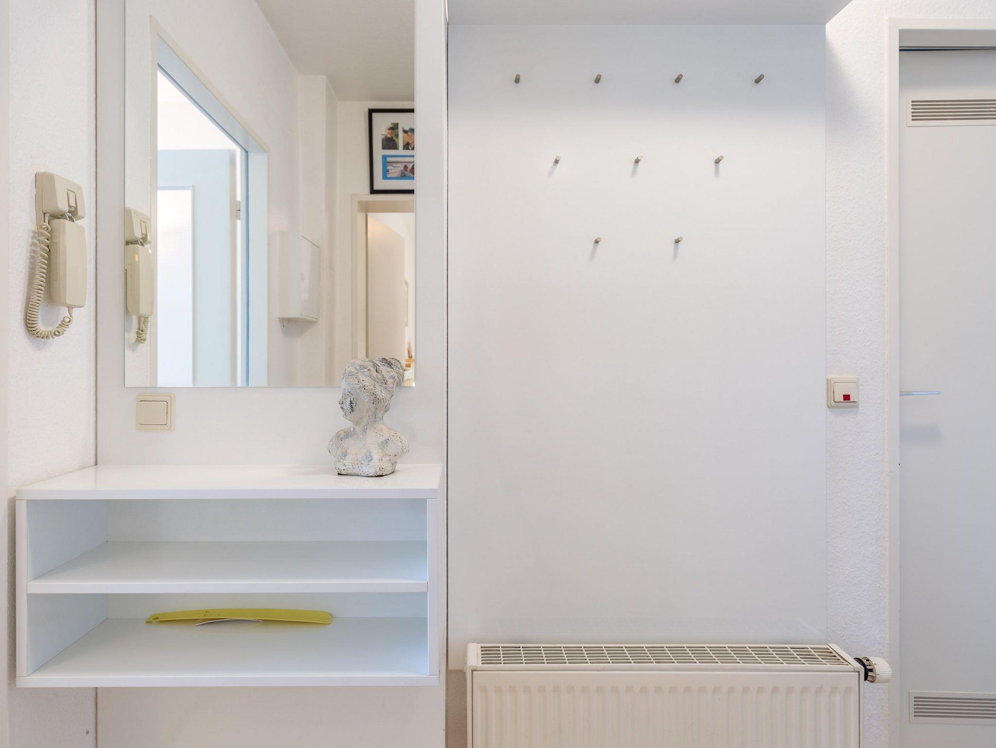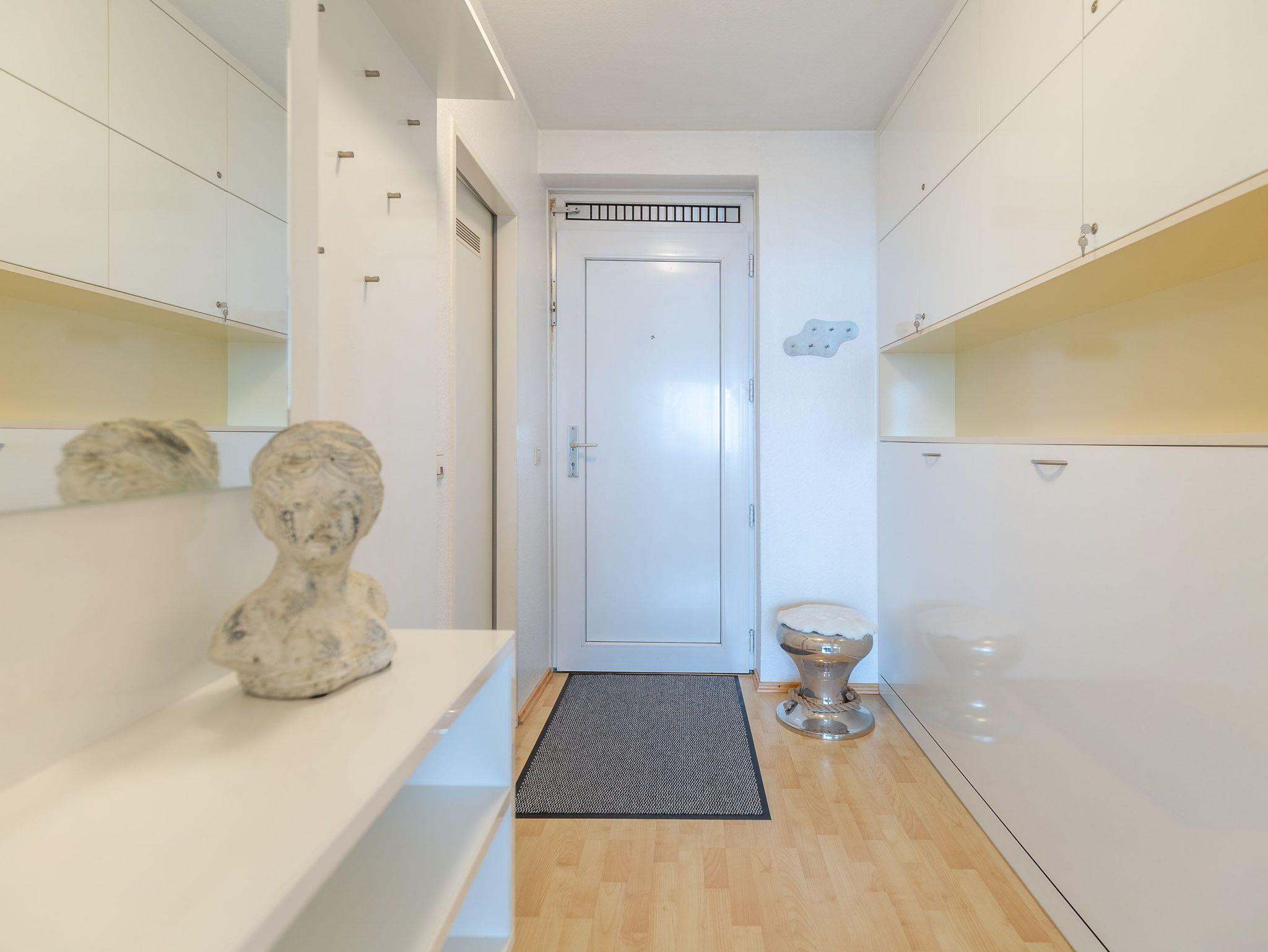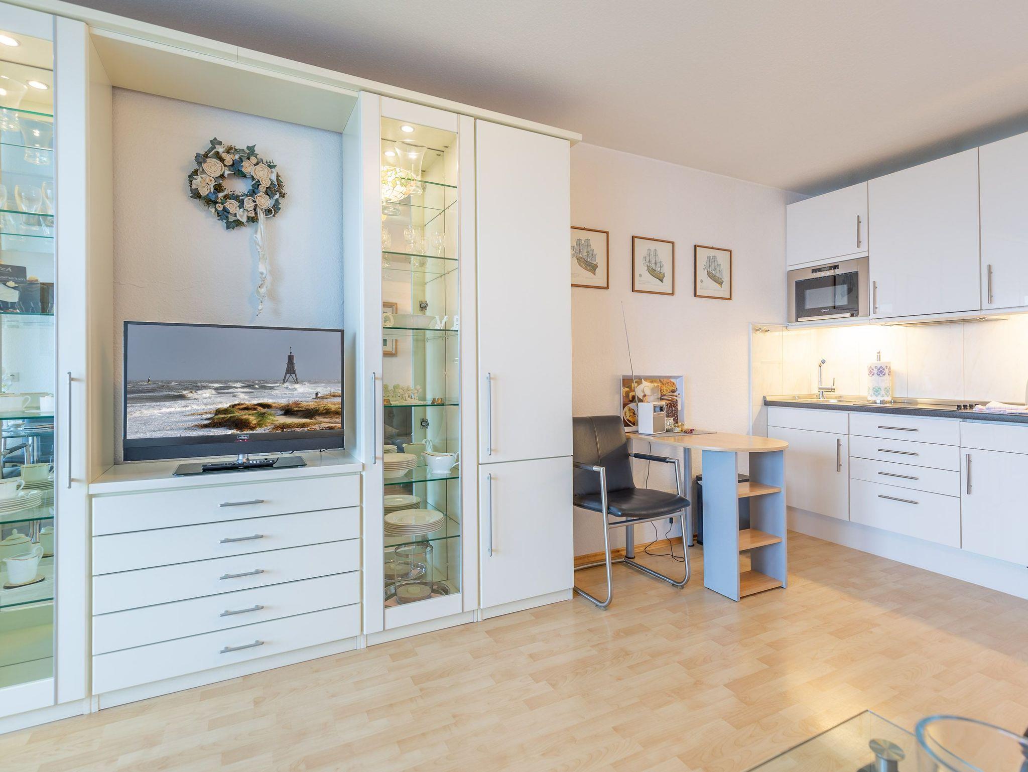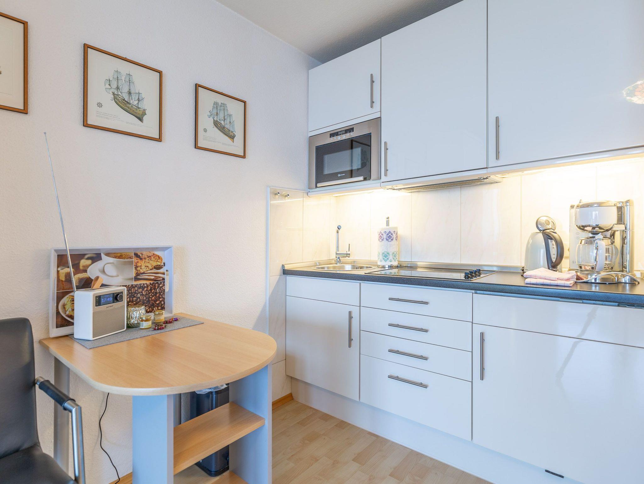 Die Ferienwohnung Nautic 611 bietet auf 45 m² genügend Platz für bis zu 3 Personen. Die Wohnung befindet sich in der 6. Etage und ist über einen Aufzug leicht zu erreichen. Für beste Unterhaltung sorgt ein großer Flachbildfernseher der Marke Metz. Das separate Schlafzimmer mit elektrischen Außenjalousien und Doppelbett gewährleistet, dass Sie sich auch im Schlaf erholen. Ein Schrankbett im Flur bietet eine weitere Schlafmöglichkeit. Die offene Küche mit Kühlschrank und 2-Zonen-Ceranfeld ist mit allen Küchenutensilien ausgestattet, die Sie in Ihrem Urlaub erwarten. Auch vom möblierten Balkon genießen Sie den faszinierenden Meerblick