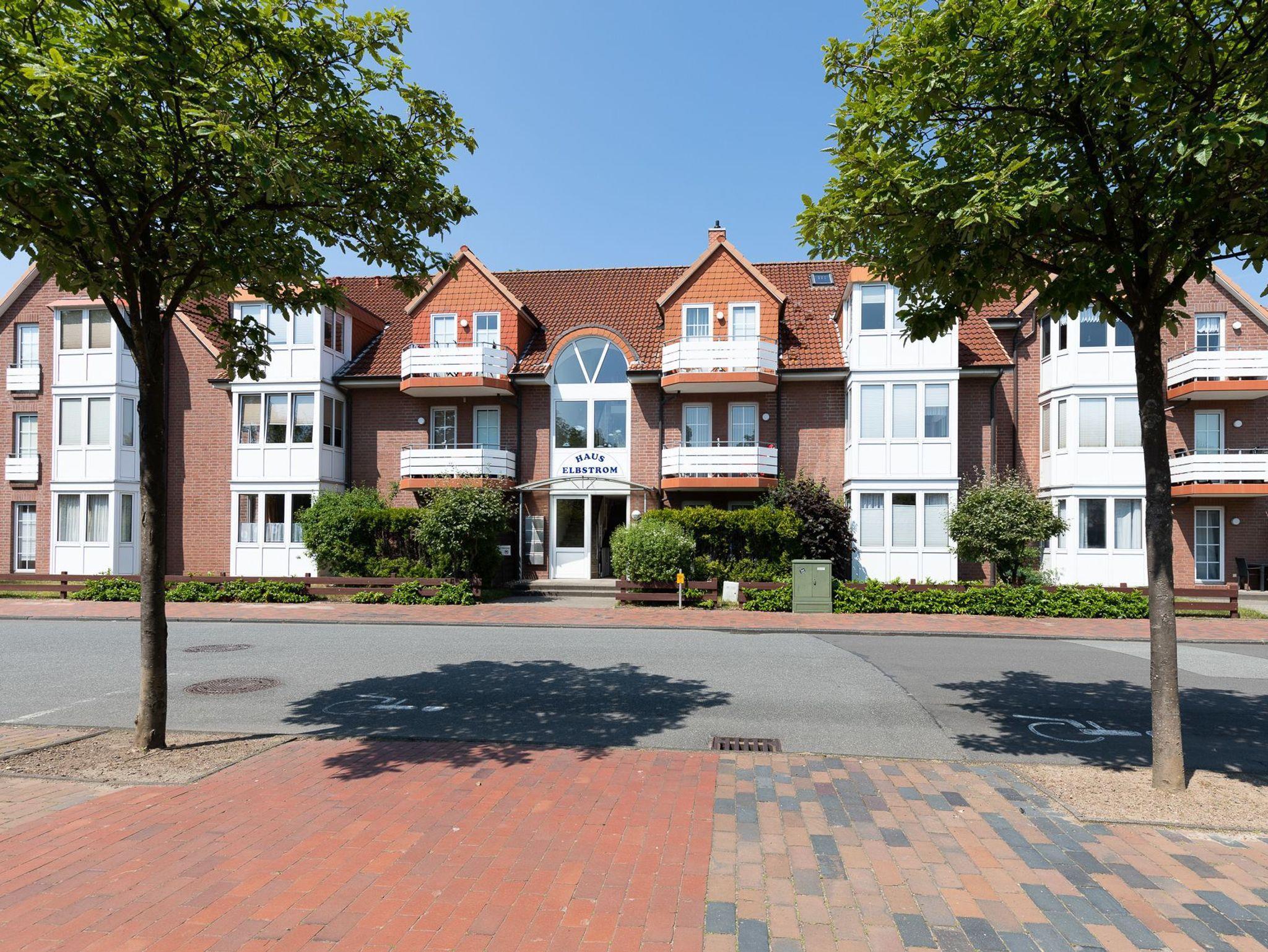 Die Ferienwohnung 8, im Haus Elbstrom befindet sich in einer verkehrsberuhigten Sackgasse. In nur 300 Metern erreichen Sie die Nordsee mit dem Sandstrand und die Kugelbake. Bäcker und verschiedene Restaurants sind Fußläufig zu erreichen.