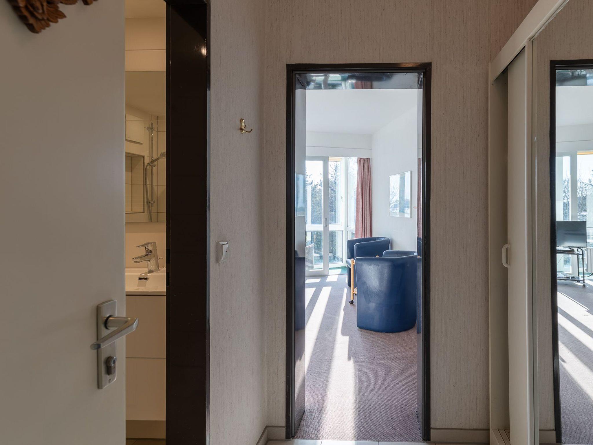 Die 1 Raum Ferienwohnung mit Seesicht Richtung Elbe - den Weltschifffahrtsweg, in der 4. Etage eine Größe von ca. 35 m² Wohnfläche ist komplett bis zu 2 Personen ausgestattet. Das Wohnzimmer verfügt über 2 Schrankbetten (mit 2 Einzelnen Matratzen), Küchenzeile (2 Plattenherd, Wasserkocher, Kaffeemaschine, Toaster), 2 Sessel und kleinem Tisch, Zugang zur verglasten Loggia mit Essplatz für 2 Personen, 1 Bad mit Dusche (ebenerdig) und WC, Waschmaschine und Wäschetrockner im Haus (kostenpflichtig, mit Münzautomat),1 Flatscreen TV (Wohnzimmer), Nichtraucherwohnung, Fahrstuhl im Haus, keine Haustiere, reservierter PKW Stellplatz am Haus.