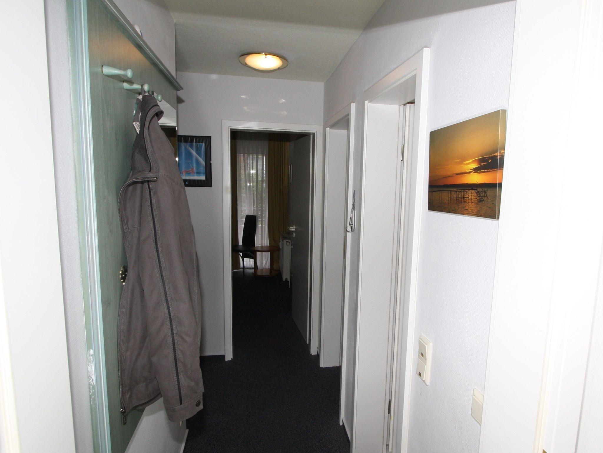 3-Zimmer-Appartement für bis zu 6 Personen auf ca. 50-55 m². Zwei Schlafzimmer mit Doppel-/Einzel- oder Etagenbetten. Wohnraum mit Schlafcouch, TV, separatem Essplatz im Erker und voll ausgestattetem Küchenbereich. Balkon. Bad mit Dusche/WC. WLAN und PKW-Stellplatz vorhanden.