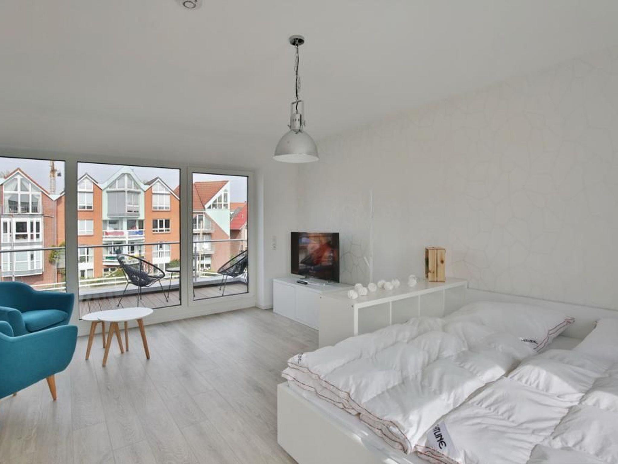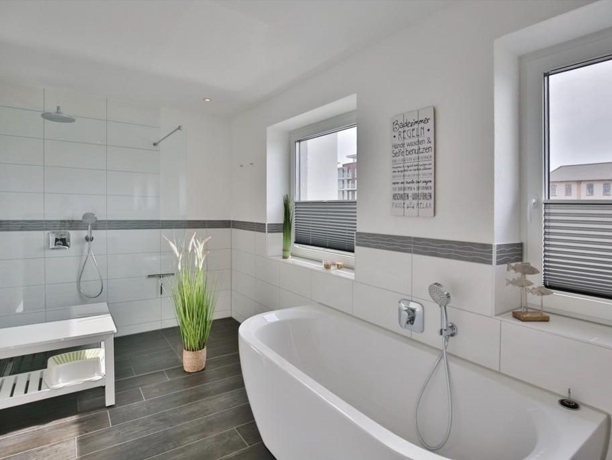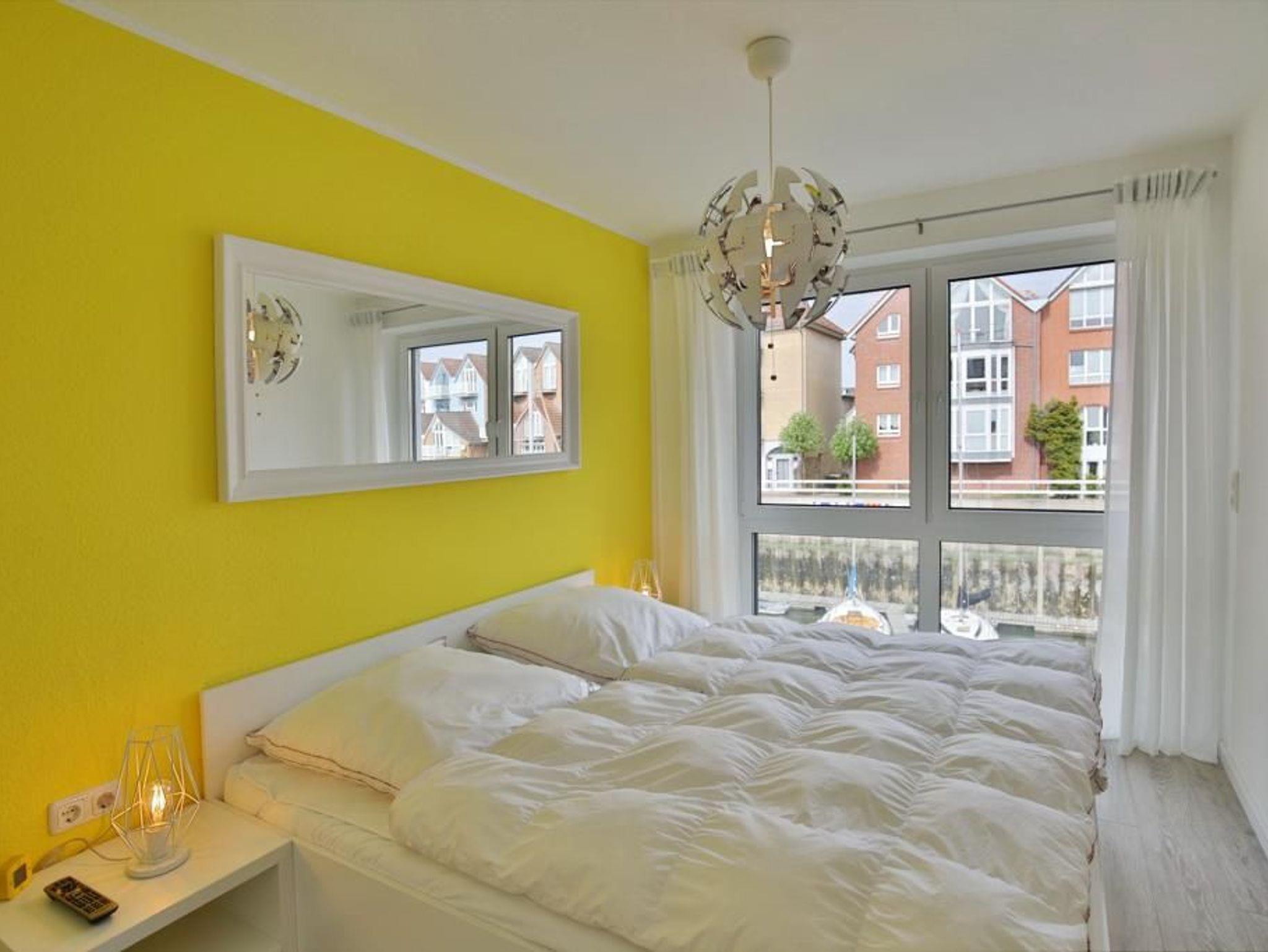 Geschmackvolles, modernes Stadthaus im Yachthafen für bis zu 6 Pers. auf 3 Etagen mit absoluter Vollausstattung. Großzügiges Wohnzimmer mit offener Küchenzeile (Backofen, Geschirrspüler, Waschmaschine, Nespresso Kaffeemaschine etc.) mit Tresen, große Terrasse (west) mit Blick in die City Marina, Kabel-TV, Gäste/WC. 1.OG: 2 komfortable Schlafzimmer mit Doppelbetten und jeweils mit TV, großes Bad/Du/WC, Föhn, 2.OG: Großzügige Lounge mit Doppelbett, TV, große Dachterrasse (west) [&] Balkon (ost), Abstellraum mit Waschmaschine [&] Trockner. Kostenfreies W-Lan im ganzen Haus. Privater Fahrradschuppen, 1 PKW-Stellplatz am Haus.