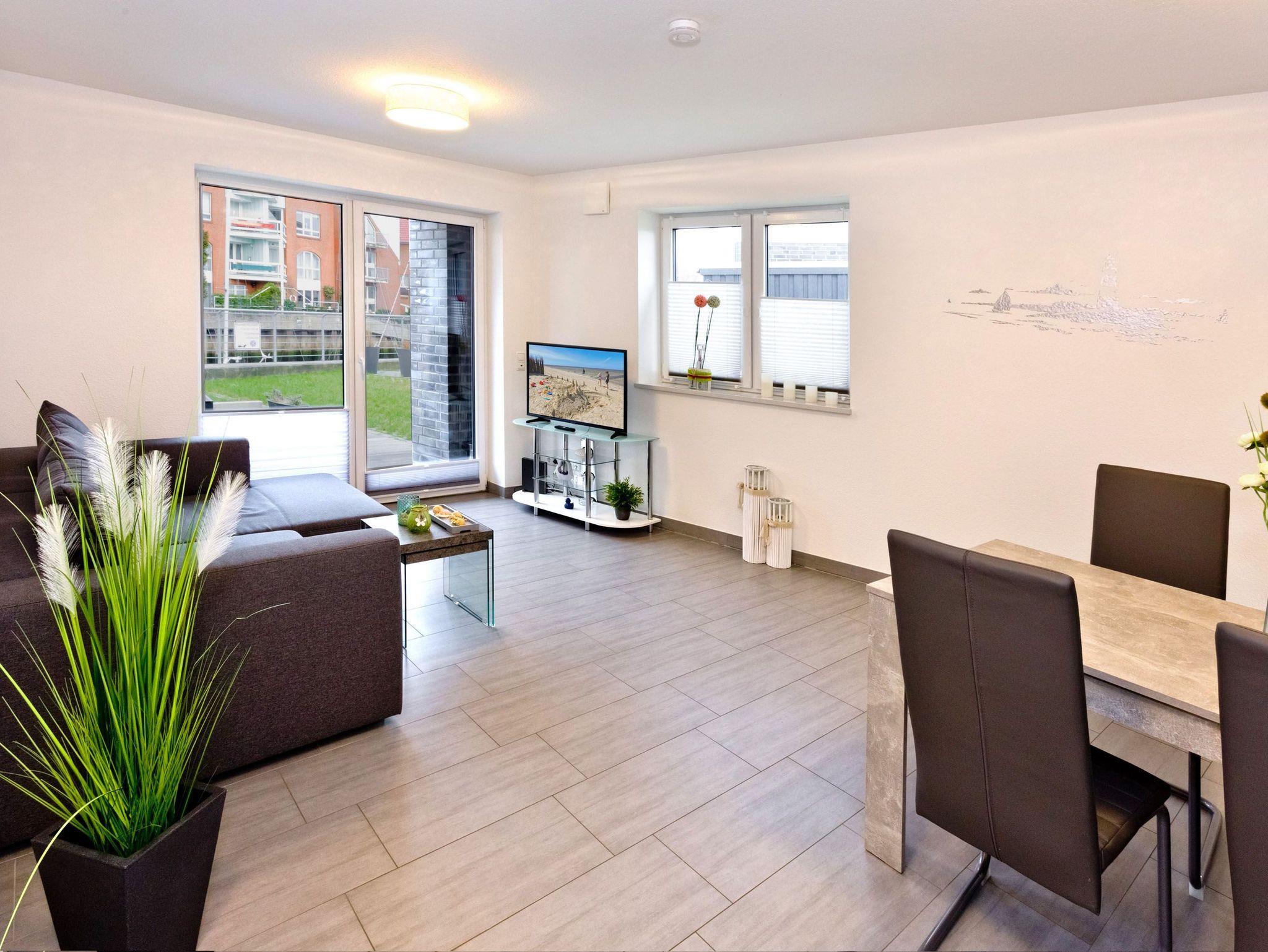 Neue 2-Raum-Wohnung für 2 Pers. in der City Marina im Erdgeschoss mit großer Terrasse (west) direkt am Hafenbecken. Voll ausgestattete Küchenzeile mit Backofen, Geschirrspüler etc.. Wohn- Esszimmer mit Smart-TV, Schlafzimmer mit Doppelbett [&] elektr.. Rollläden, Badezimmer mit ebenerdige Dusche/WC. Waschmaschine i.d. Wohnung, kostenloses W-Lan, Stellplatz #2 und großer separater Abstellraum mit E-Bike Lademöglichkeit, keine Haustiere und natürlich Nichtraucher.