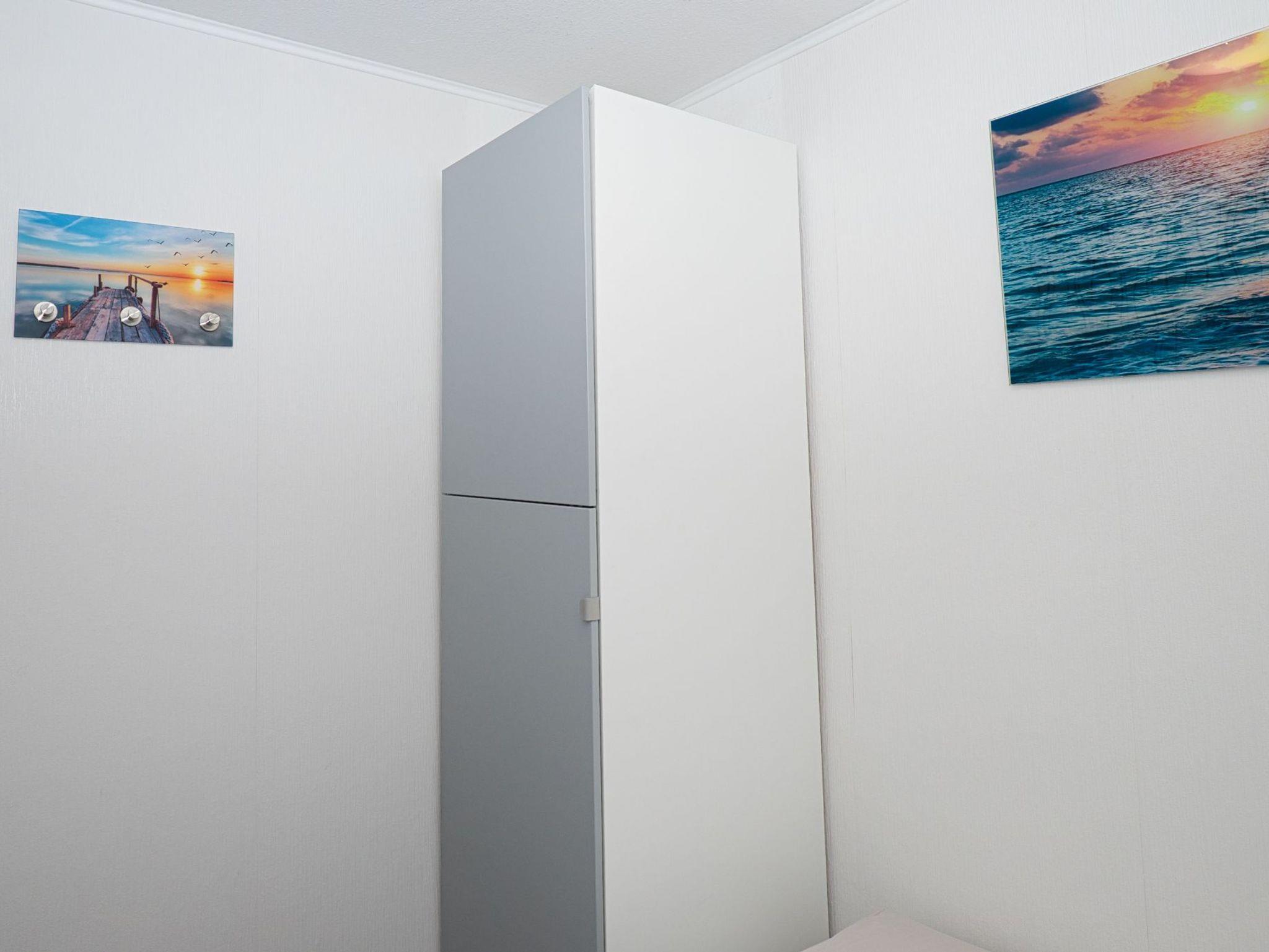 Der innenliegende abgetrennte Schlafbereich ist mit einem gemütlichen Doppelbett (steht an der Wand und ist nur von einer Seite begehbar) ausgestattet, das Ihnen erholsame Nächte garantiert. Für zwei weitere Personen, vorzugsweise Kinder, steht im Wohnbereich eine komfortable Schlafcouch bereit. Hier können Sie gemeinsam schöne Erinnerungen schaffen und den Urlaub in vollen Zügen genießen.
