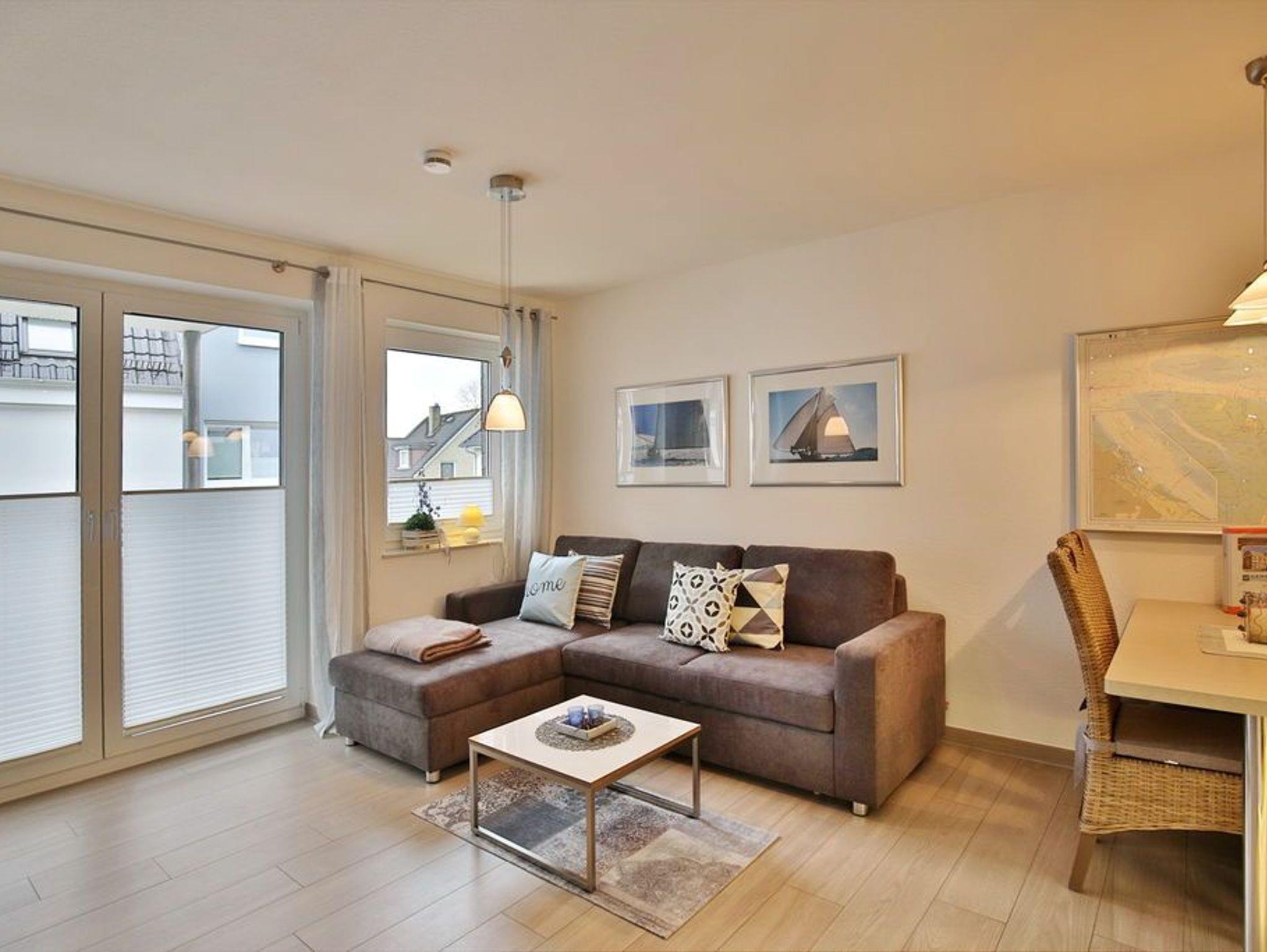 Schöne, vollständig ausgestattete Wohnung für 3 Pers., komplett mit hellen Bodenfliesen in Parkett-Optik, 1. Etage auf ca. 46 m²,[nbsp][nbsp]großer Süd-Balkon mit Balkonmöbeln und Sonnenschirm (saisonabhängig), 1 Schlafzi. mit Doppelbett, Wohn-/Schlafzi. mit Schlafcouch, 2x Sat-TV, W-LAN kostenlos., große Komfort-Küchenzeile (Geschirrspüler, Backofen, Mikrowelle, sep. Gefrierfach), Dusche mit bequemer Sitzfläche, Föhn, Kosmetikspiegel, Rollläden, breiter Pkw-Stellplatz #5, Nichtraucher, keine Haustiere