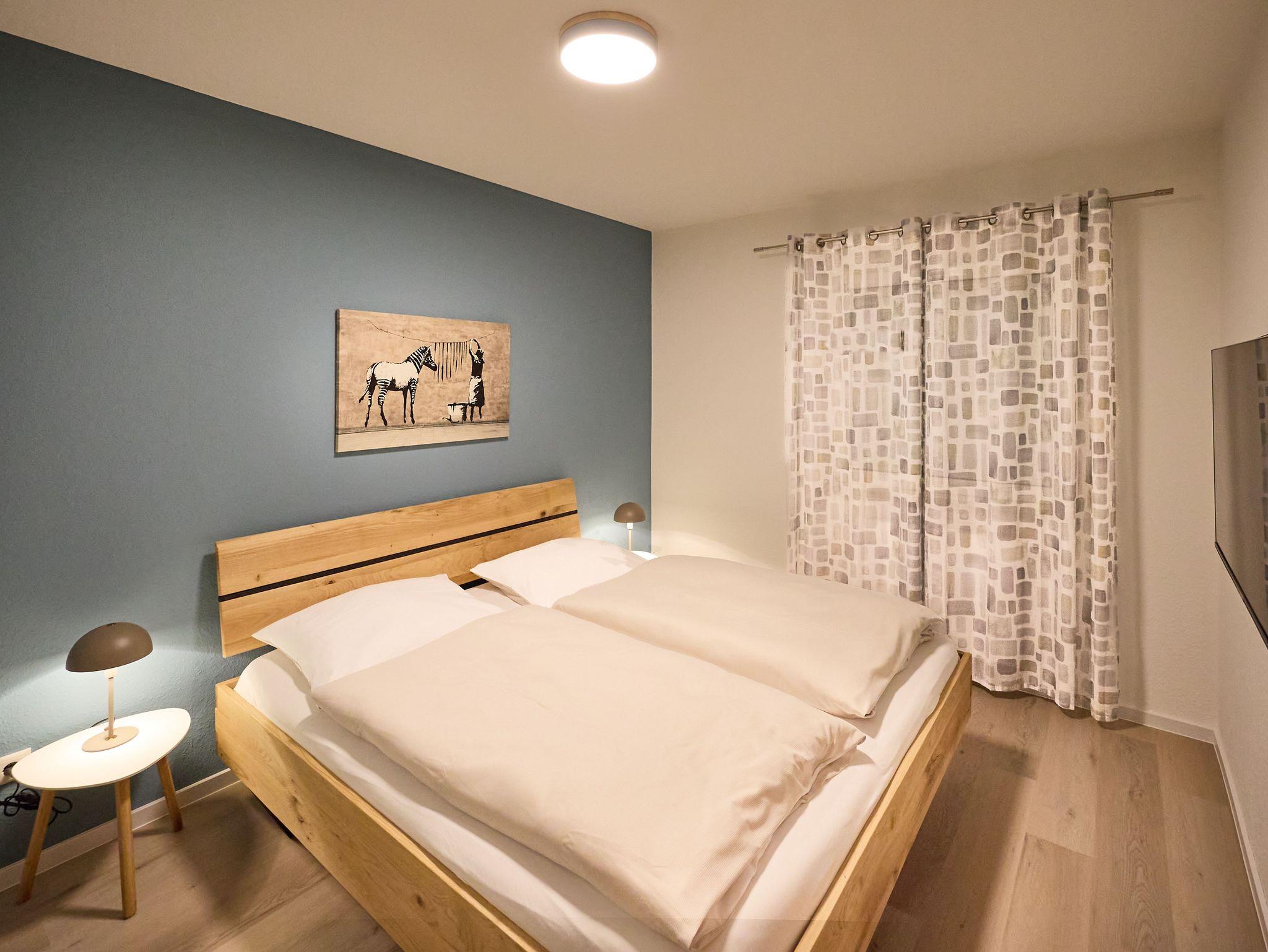 Im Wohnzimmer lädt eine bequeme Eck-Couch zu relaxen ein und kann in ein 1,40 m breites Doppelbett mit Lattenrost und Matratze verwandelt werden. Ein 55 Bildschirm komplettiert den Wohlfühl-Charakter. Das gemütliche Schlafzimmer verfügt über ein 1,80m Doppelbett und einen 42 Bildschirm. Das Designerbad lässt mit Regenschauer-Dusche und Handtuch-Heizkörper keine Wünsche offen.