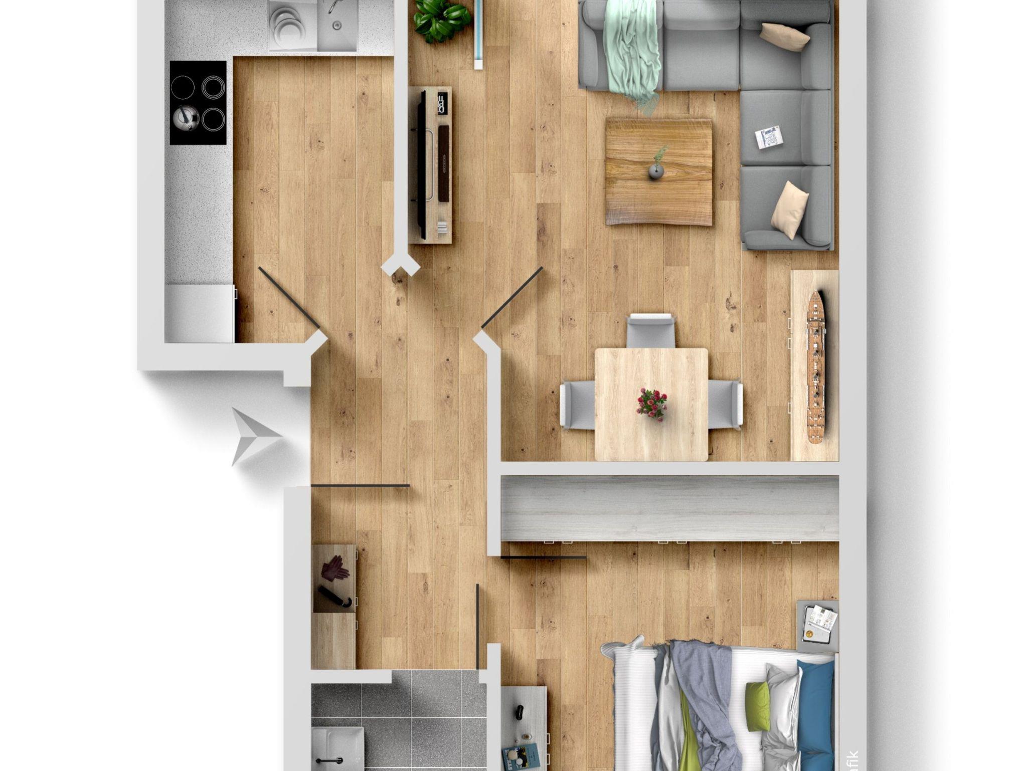 Die Wohnung ist komfortabel ausgestattet, gemütlich eingerichtet und bietet durch die Terrasse ein Stück Freiraum im Freien.