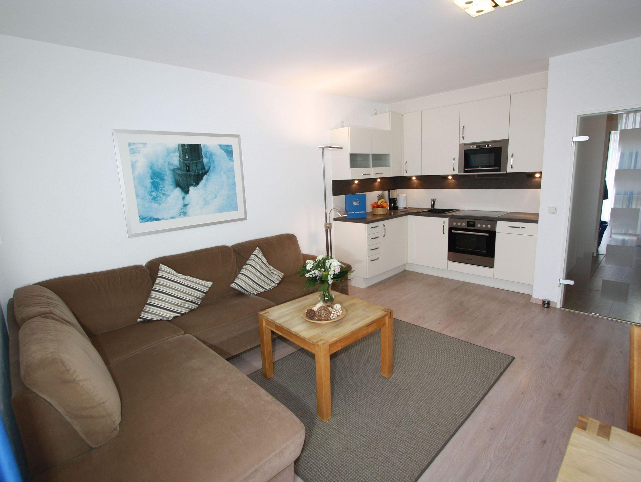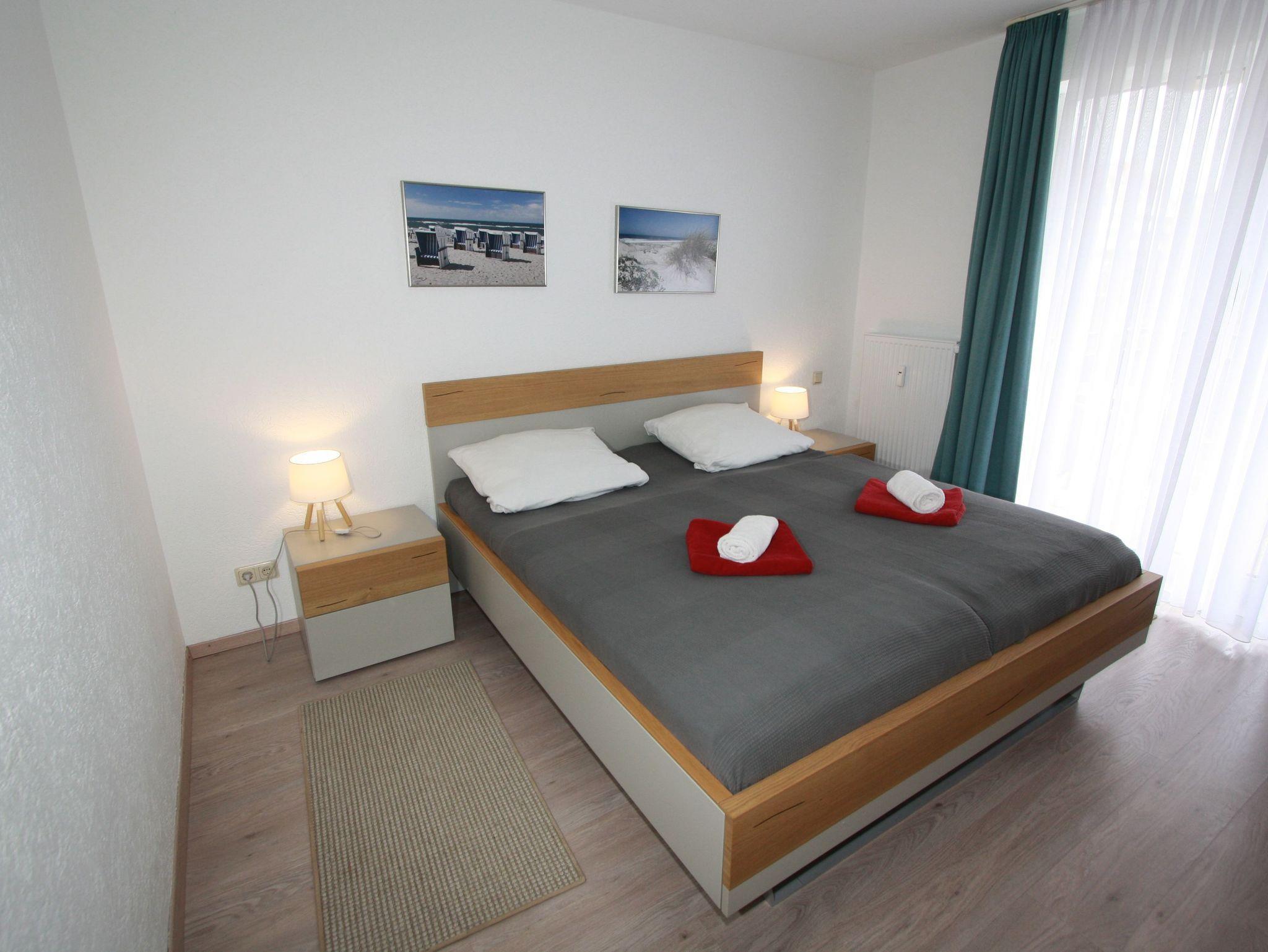 2-Zimmer-Appartement für bis zu 4 Personen auf ca. 46 m². Schlafzimmer mit Doppelbett, Wohn-Schlafraum mit Doppelbettcouch, TV, separatem Essplatz, voll ausgestattetem Küchenbereich, Balkon oder Terrasse, Bad mit Dusche/WC. WLAN und PKW-Stellplatz vorhanden.