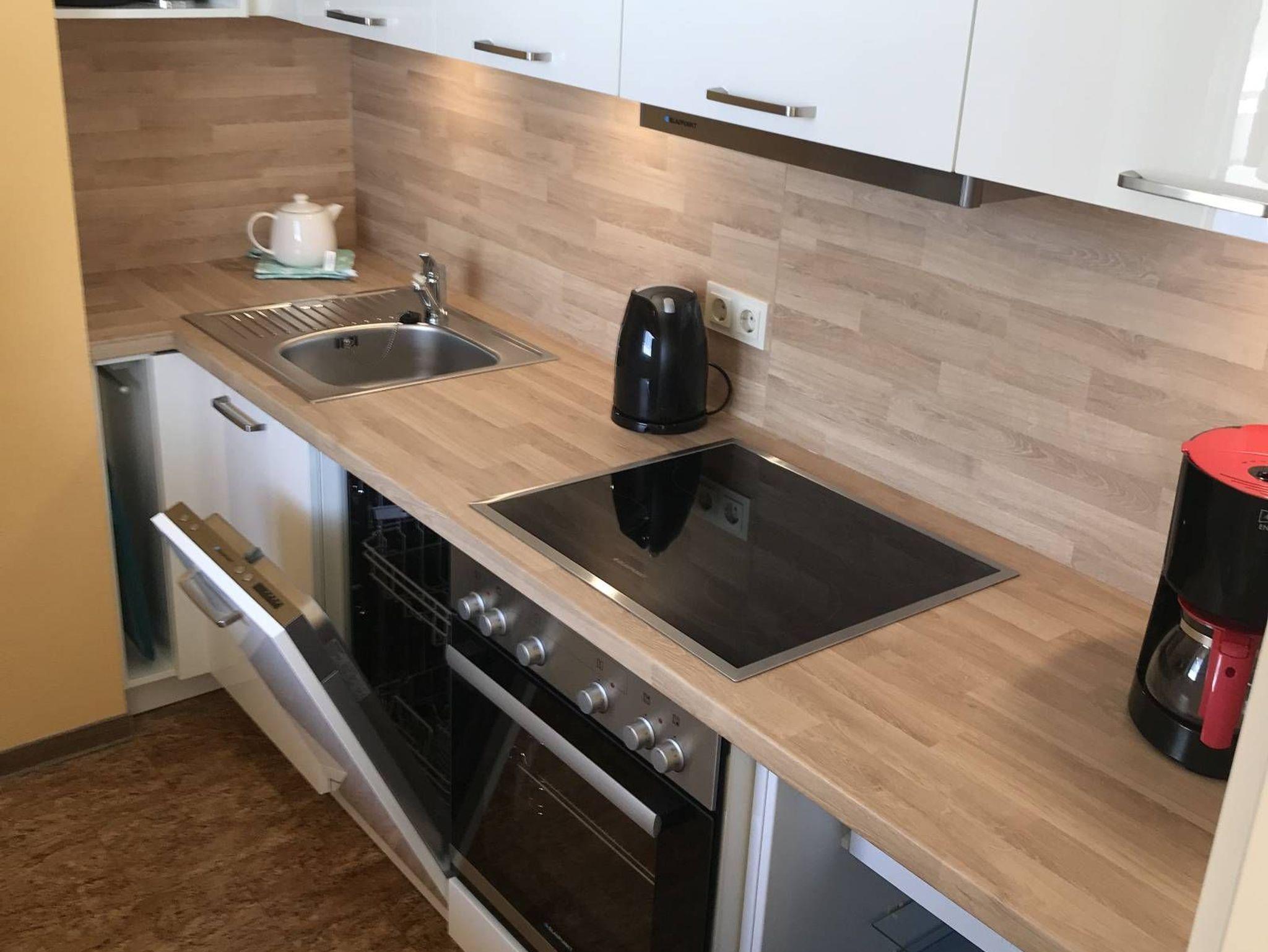 Mit einer Größe von ca. 66 m² Wohnfläche ist die Wohnung komplett bis zu 4 Personen ausgestattet, Wohnzimmer mit kompletter neuer Einbauküche (Backofen, Cerankochfeld, Geschirrspüler, Toaster, Wasserkocher, Kühlschrank), Essplatz für 2 Personen, Sofa-Ecke und direktem Zugang zur großen Dachterrasse, 1 Schlafzimmer mit Doppelbett (Kleiderschrank, 1 Flatscreen TV), Bad mit Dusche und WC, 1 Flatscreen TV im Wohnzimmer, Nichtraucherwohnung, keine Haustiere, PKW-Stellplatz direkt am Haus. Die kompletten Außen-Türen und die Fenster sind mit Insektenschutz versehen.