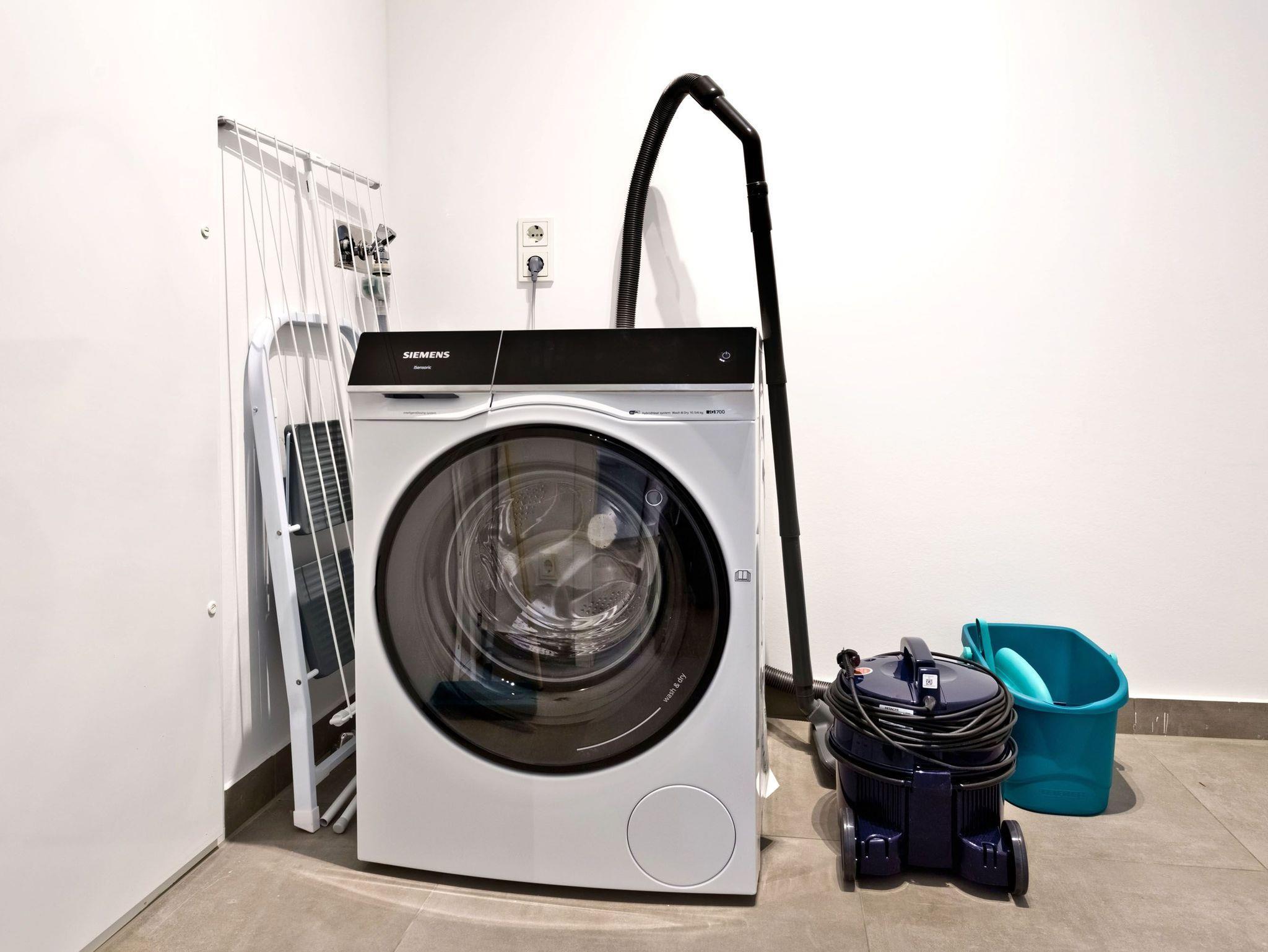 Hauswirtschaftsraum in der Wohnung mit eigener Waschmaschine, Bügeleisen/Bügelbrett.