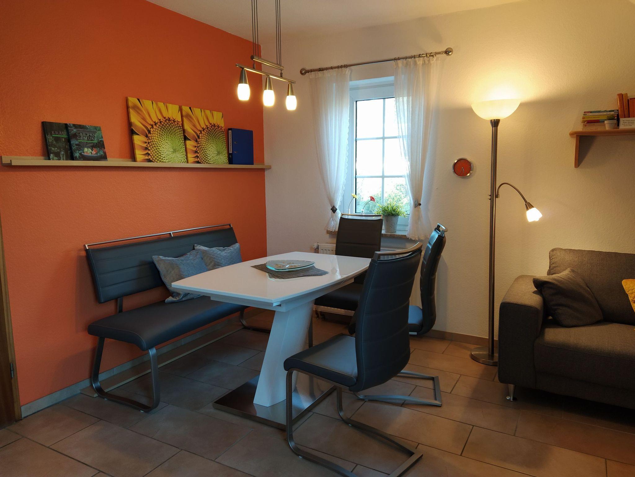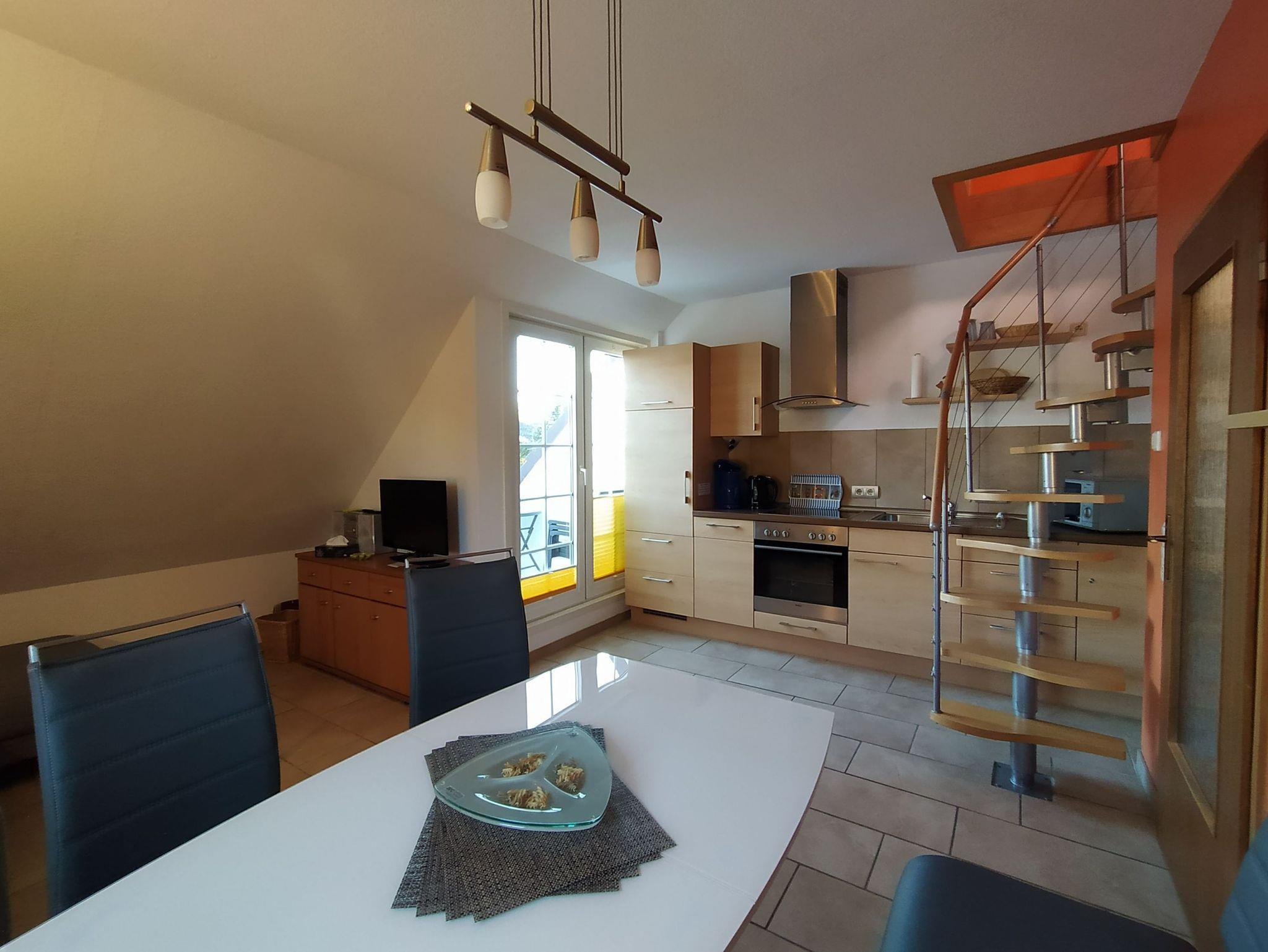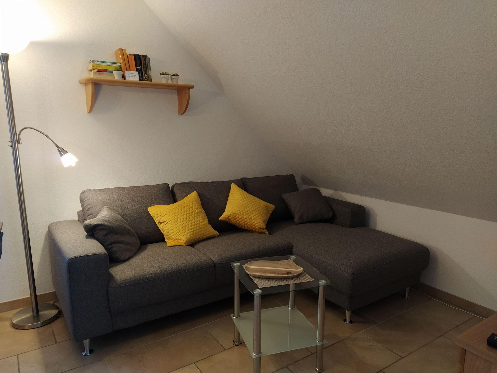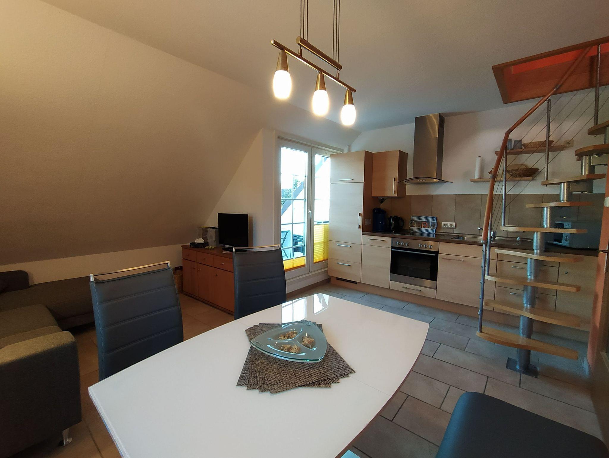 Die Wohnung befindet sich direkt über der Wohnung 12/1, ist also ideal für einen Urlaub mit Freunden, Bekannten oder Oma und Opa geeignet. Sie verfügt über ein Wohn-/Esszimmer mit moderner Küchenzeile, Wohnbereich mit gemütlichem Sofa, TV mit Kabelprogramm und Radio. Die Küche ist vollständig ausgestattet. Außerdem befindet sich noch ein Tisch mit Stühlen und einer Sitzecke in diesem Bereich.