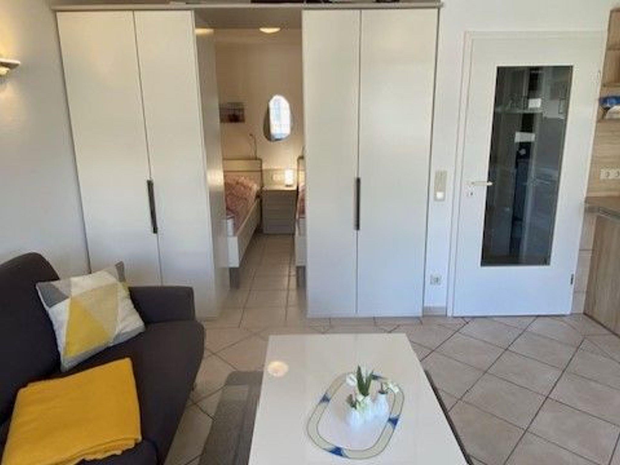 Dieses Einraum-Apartement ist ideal für zwei Personen. Es befindet sich im 1.Stock im vorderen Bereich der kleinen Ferienanlage. Bis zum Meer sind es nur wenige Schritte, da sich die Anlage gleich hinter dem Deich in einer ruhigen Gegend befindet. Ein Stellplatz in der Tiefgarage steht zur Verfügung.
