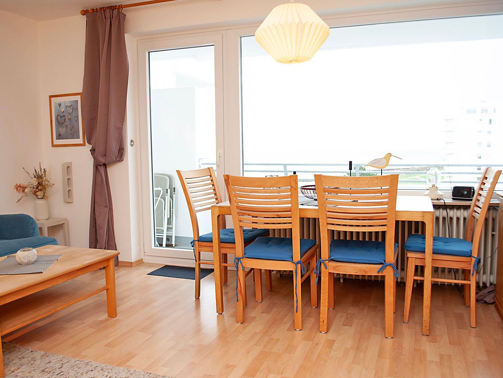 Das Apartment 610 ist ein 1-Raum-Apartment im 6. Obergeschoss für bis zu 4 Personen mit 40 qm. Der Ostbalkon mit Meerblick bietet Ihnen vormittags Sonne und nachmittags Schatten.