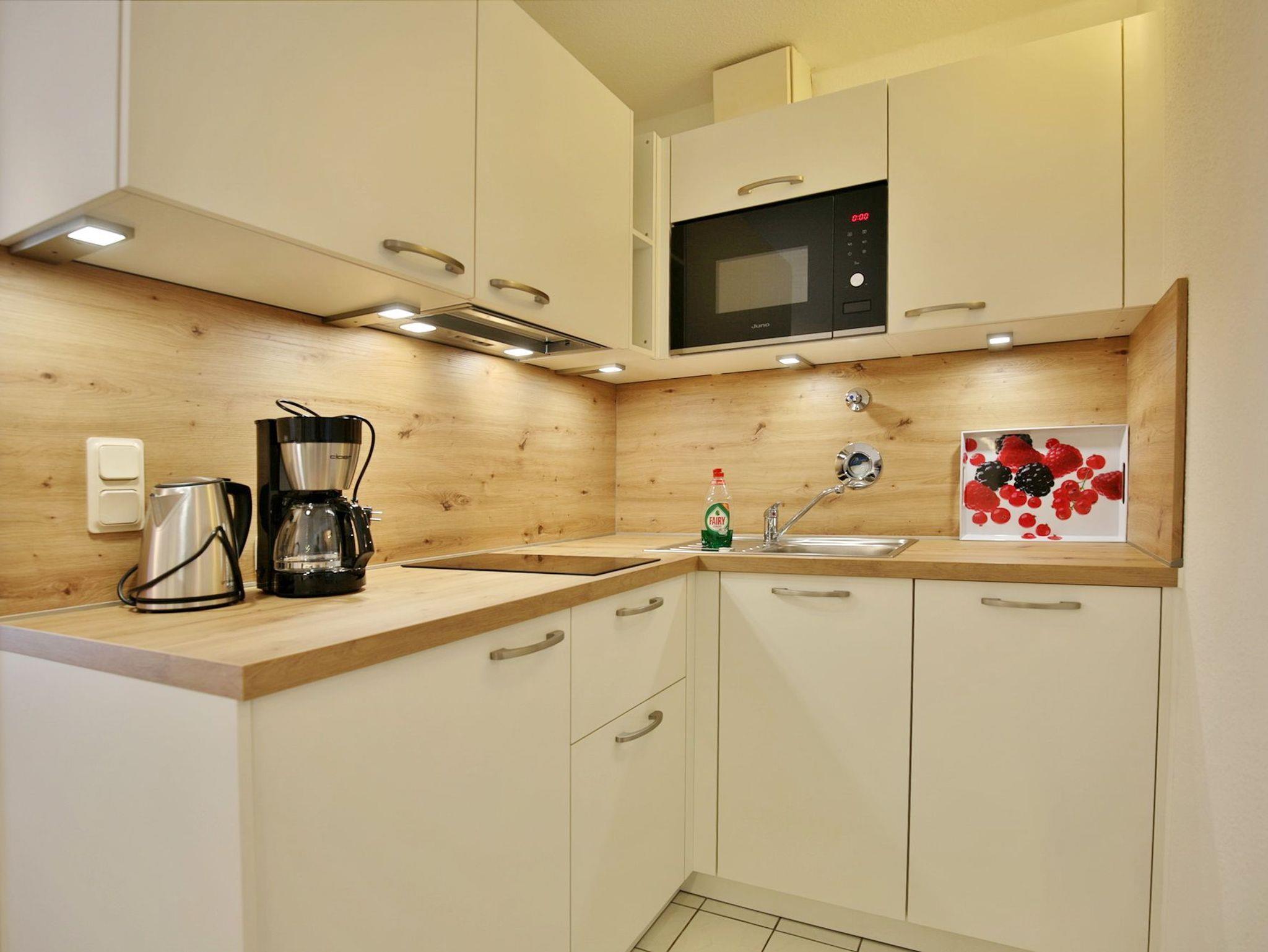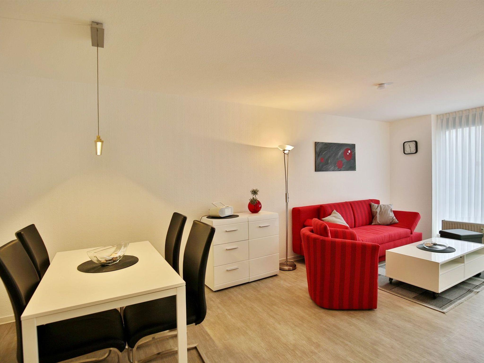 Renovierte 2-Raum-Wohnung auf ca. 45m², parterre, komplett ausgestattet bis 3 Pers., 1 Schlafzimmer mit Doppelbett, 1 kombiniertes Wohn/Schlafzimmer mit Doppelbettcouch, Sat-TV, DVD-Player, Stereo-Anlage, kostenloses W-Lan, neue Küchenzeile [&] neue Du/WC in 2021. Natürlich Nichtraucher [&] keine Haustiere erlaubt. Parkplatz #6 direkt vor dem Appartement, dadurch fällt die Terrasse sehr klein aus.