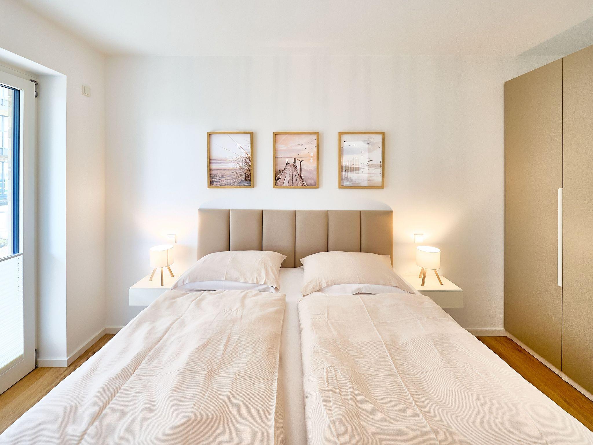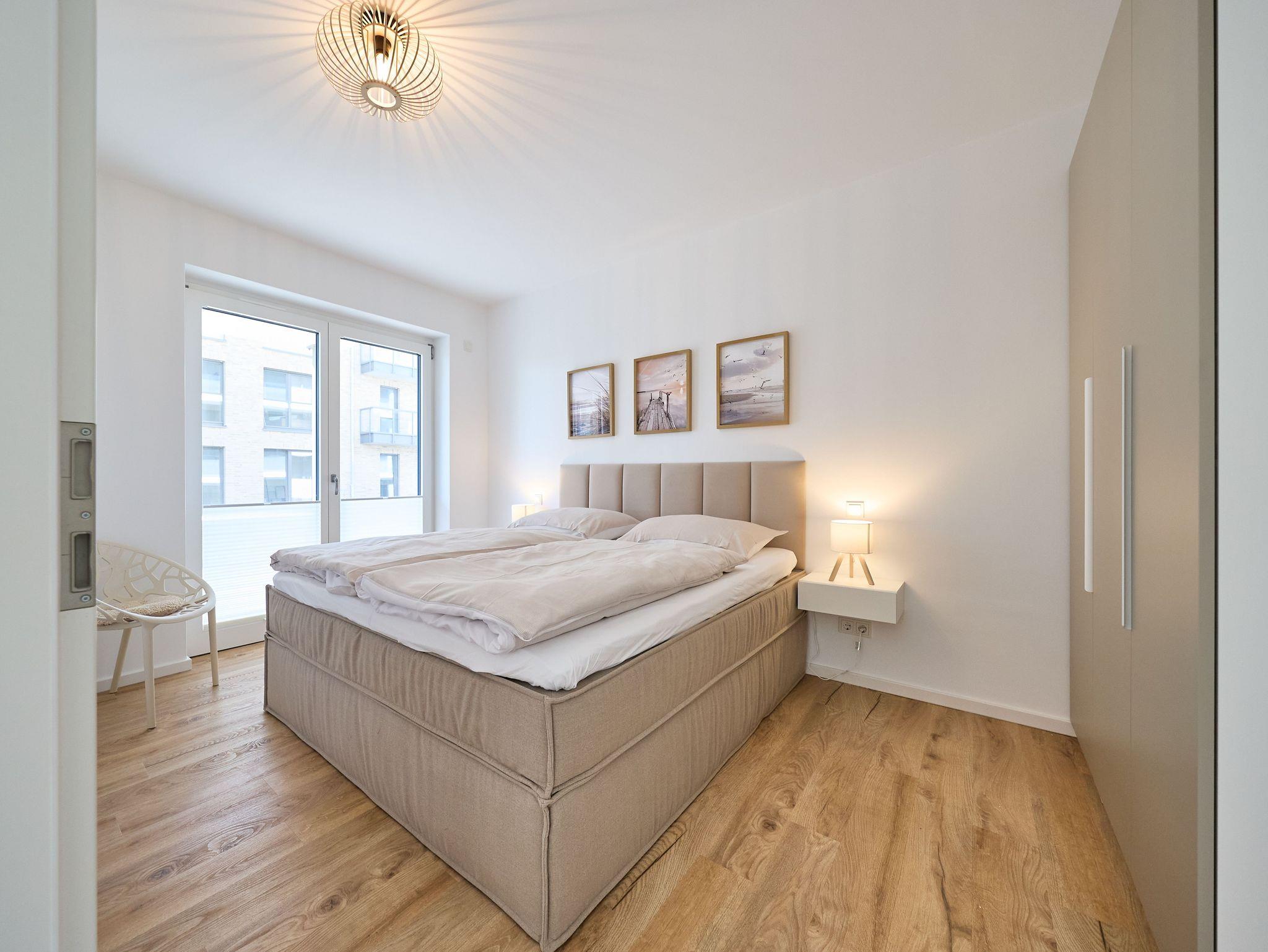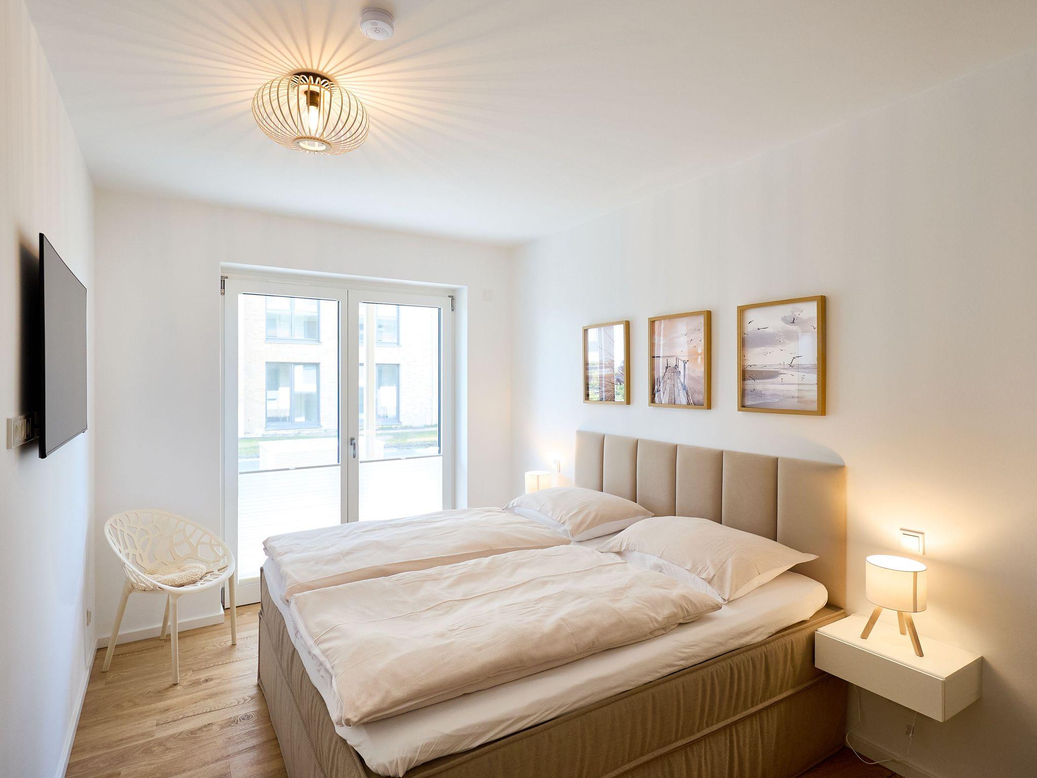 Zwei liebevoll eingerichtete Schlafzimmer sorgen für erholsamen Schlaf. Das erste Schlafzimmer ist mit einem komfortablen Boxspringbett (180 x 200 cm) und einem 50?? Flachbild-TV ausgestattet. Im zweiten Schlafzimmer erwartet Sie ein weiteres Boxspringbett (160 x 200 cm) sowie ein 43?? Flachbild-TV. Beide Räume bieten ausreichend Stauraum und sind in harmonischen, nordischen Farbtönen gestaltet.