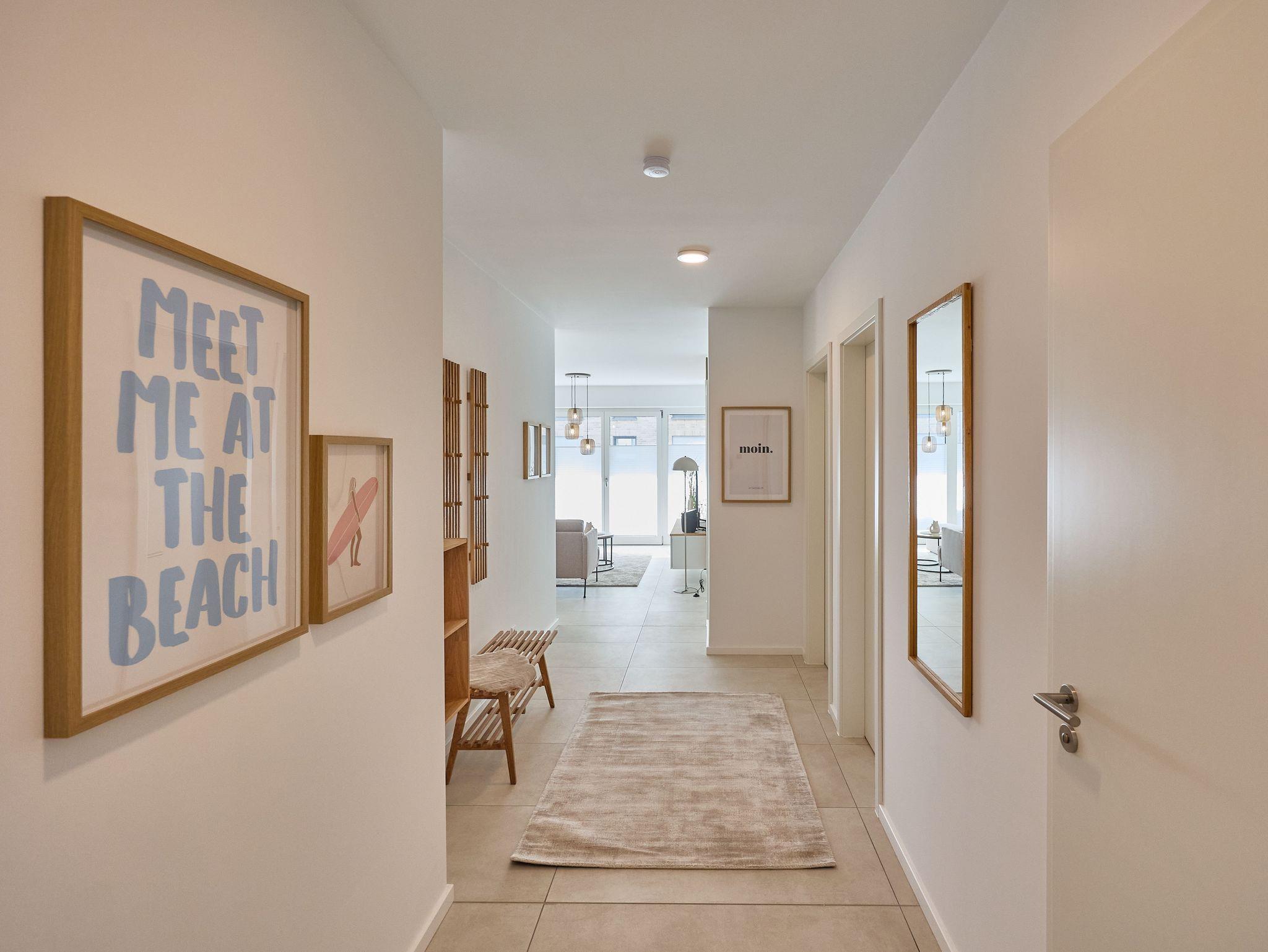 Ein besonderes Highlight ist die ca. 30 m² große Terrasse, die die Wohnung umläuft. Hier genießen Sie Frühstück in der Morgensonne, entspannen nachmittags bei frischer Nordseebrise oder lassen den Tag bei einem Glas Wein und Blick Richtung Sonnenuntergang ausklingen. Hochwertige Gartenmöbel laden zum Verweilen ein, auch bei frischerem Wind.