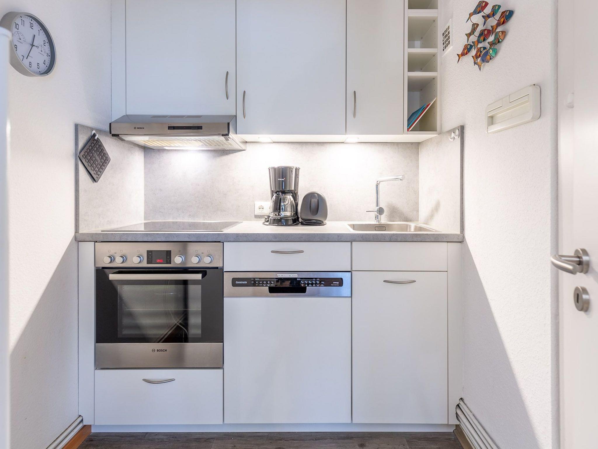 Die günstige 2-Zimmer Ferienwohnung bietet ein sehr gutes Preis-/Leistungsverhältnis für bis zu 3 Personen. Am Abend können Sie bei einem Glas Wein einen erlebnisreichen Tag ausklingen lassen. Dabei sorgt der Flachbildfernseher im Wohnbereich für beste Unterhaltung. Die Küche ist mit einem Backofen, Geschirrspüler sowie einem Kühlschrank mit 3 Gefrierfächern ausgestattet.